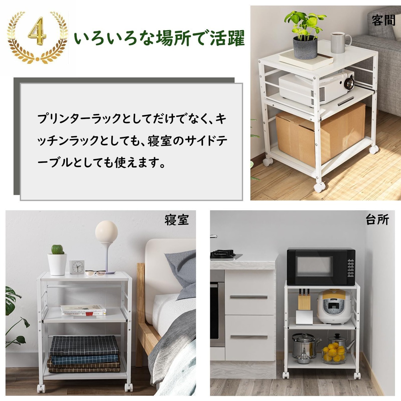 【360°回転キャスター、移動便利】プリンター棚には360°回転キャスターを付いており、移動が便利です、非常に使いやすい。オフィスで使用するだけではなく、リビングやベッドサイドでも役立ちます!様々場所で活躍!