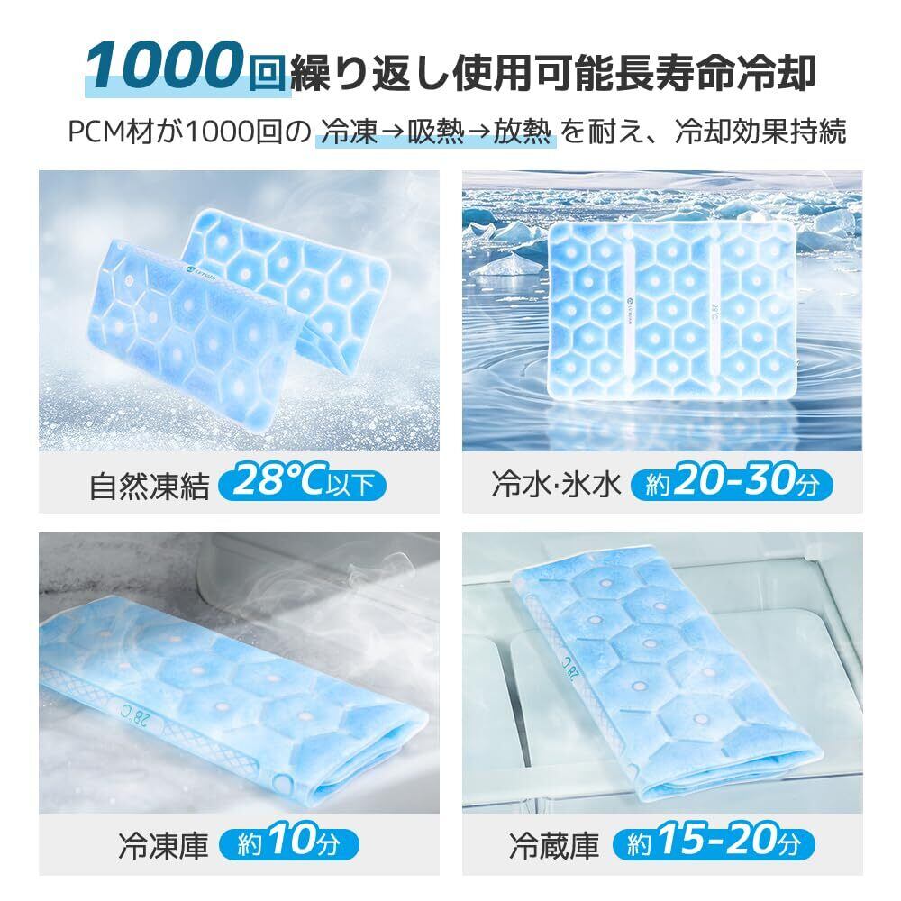 【PCM素材とは?NASA由来の次世代冷感技術】 NASAの宇宙飛行士を守るために開発された**PCM(相変化素材)**を使用。 28℃を境に固体⇄液体に変化しながら熱を吸収・放出。温度を自動調整し、冷たすぎず心地よい20℃を長時間持続します。 さらに、特殊TPUカバーにより結露を防ぎ、寝具や服が濡れる心配もナシ!冷凍庫・冷水・エアコン下などどこでも凍結OK。自然凍結なら約60〜120分、冷蔵ならさらに長時間冷却持続!