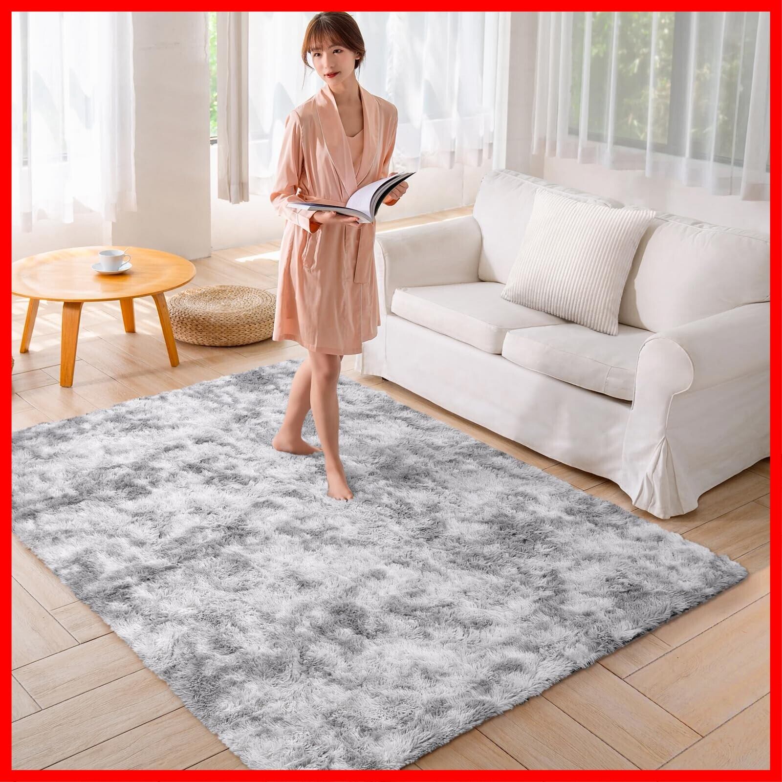Beddiny カーペット ラグ ラグマット 洗えるラグ【中層:極厚30D高密度ウレタン 独自技術の抗菌防臭加工】絨毯 オールシーズン快適に使用 滑り止め付き 高密度シャギーラグ ライトグレー ×ホワイト 80×140cm