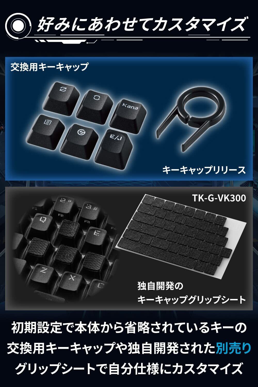 エレコム ゲーミングキーボード V-custom VK200S 有線 テンキーレス 65%サイズ メカニカル ネオクラッチキーキャップ 銀軸 スピードリニア USBポート搭載 TK-VK200SBK