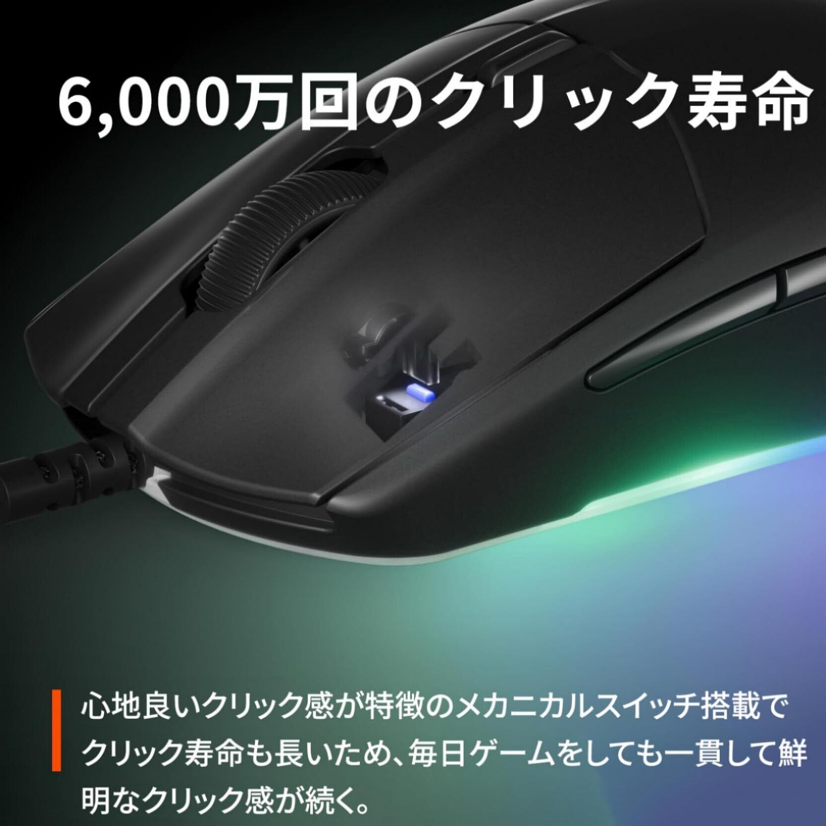 【6,000万回のクリック寿命】心地良いクリック感が特徴のメカニカルスイッチ搭載でクリック寿命も長いため、毎日ゲームをしても一貫して鮮明なクリック感が続く。