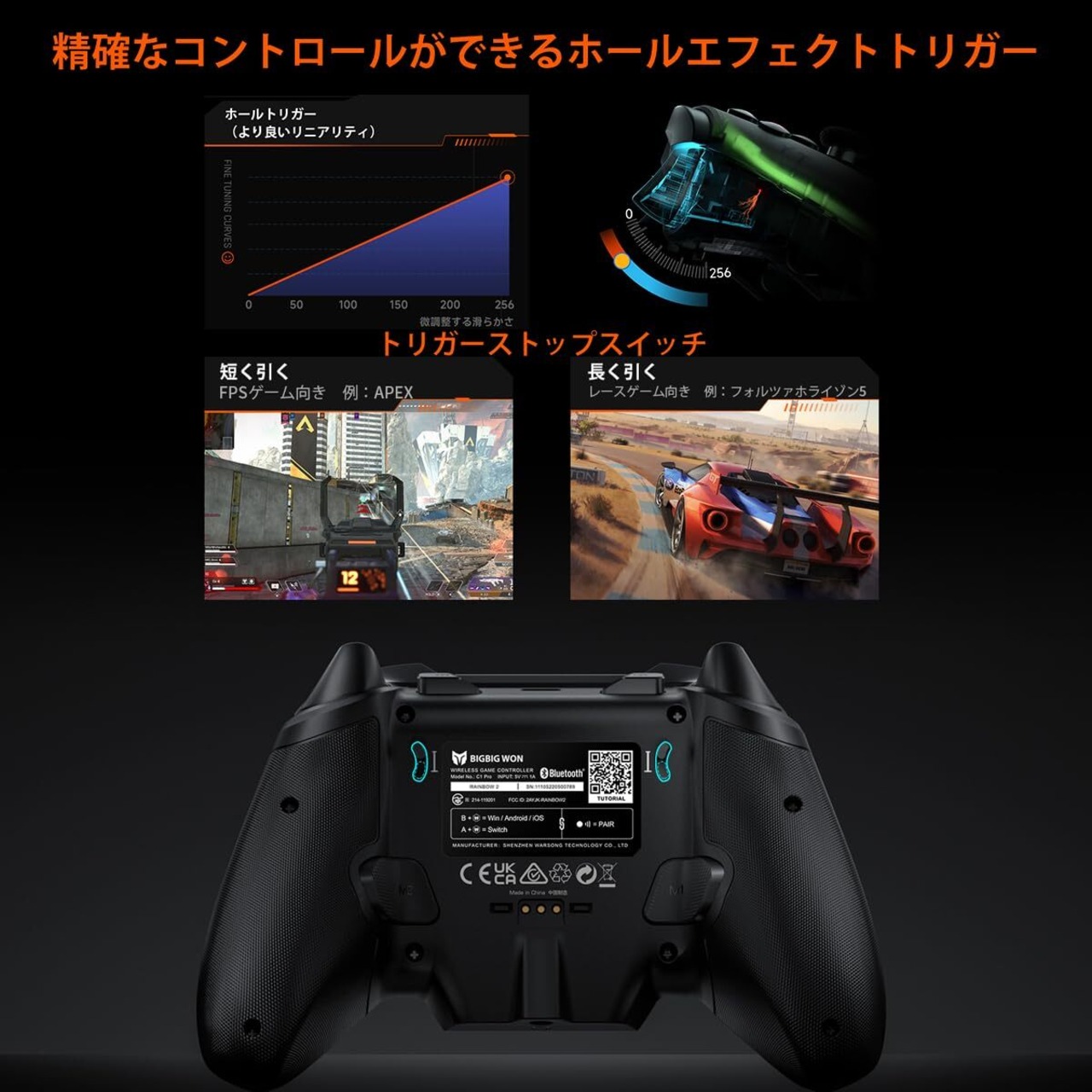 ワイヤレスコントローラー、BIGBIG WON Rainbow 2 Pro Combo PCコントローラー 6軸ジャイロセンサー、ホール効果トリガー、ALPSジョイスティック、3.5mmオーディオ、ゲームパッド使用 PC Windows/Android/iOS/Switch Proコントローラー 充電ドック付き
