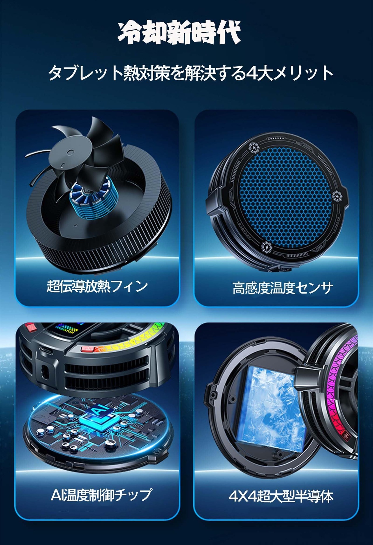 【在庫セール】【最低-10℃凍結 AI調節】 iPad 冷却ファン タブレット ペルチェ素子 冷却クーラー 放熱ファン 24W高出力 4段階調節 LED温度/出力表示 伸縮クリップ/磁気式 モバイルゲーム 配信 熱暴走対策 タブレット/iPad/Surface対応 | Cherry Blossoms