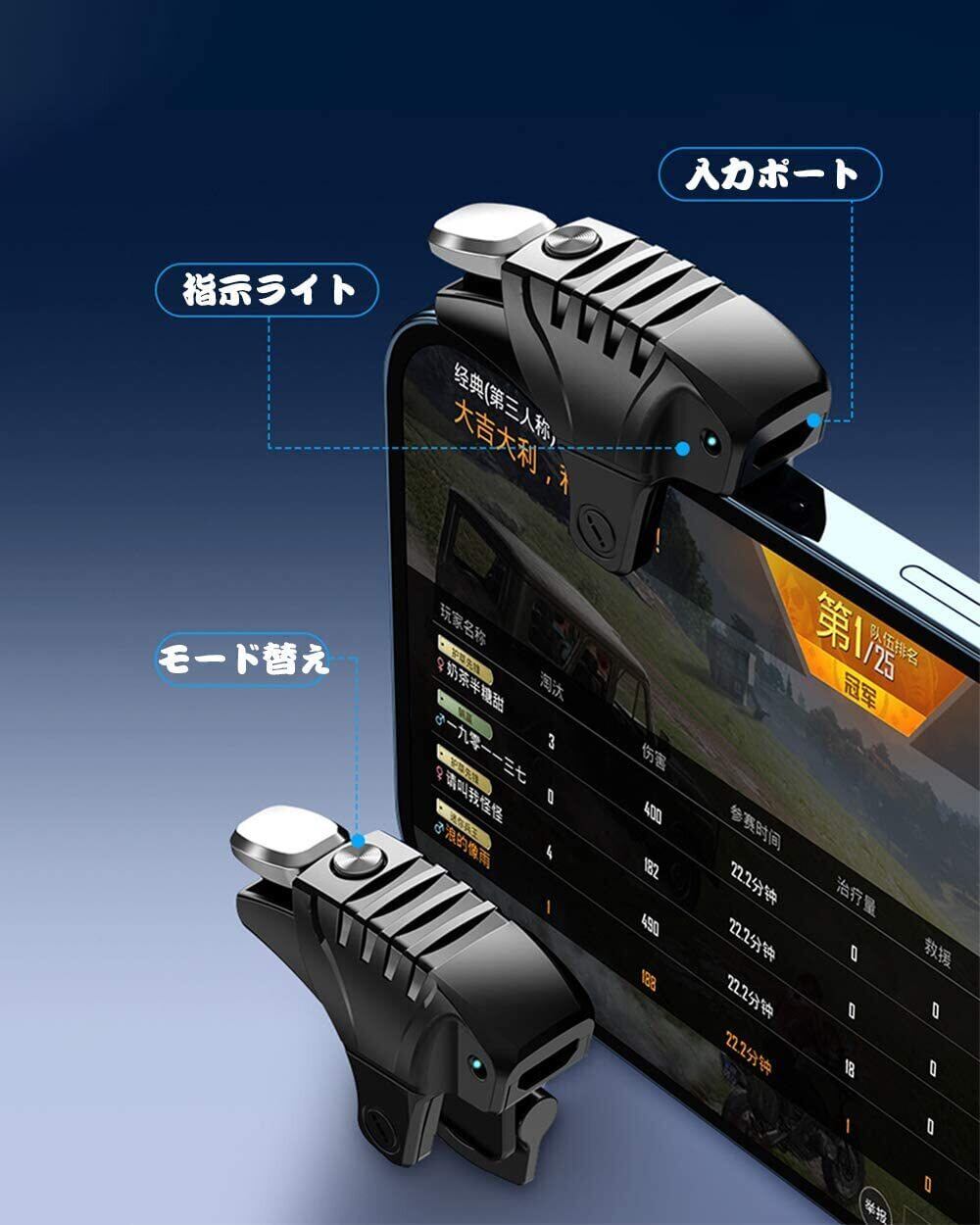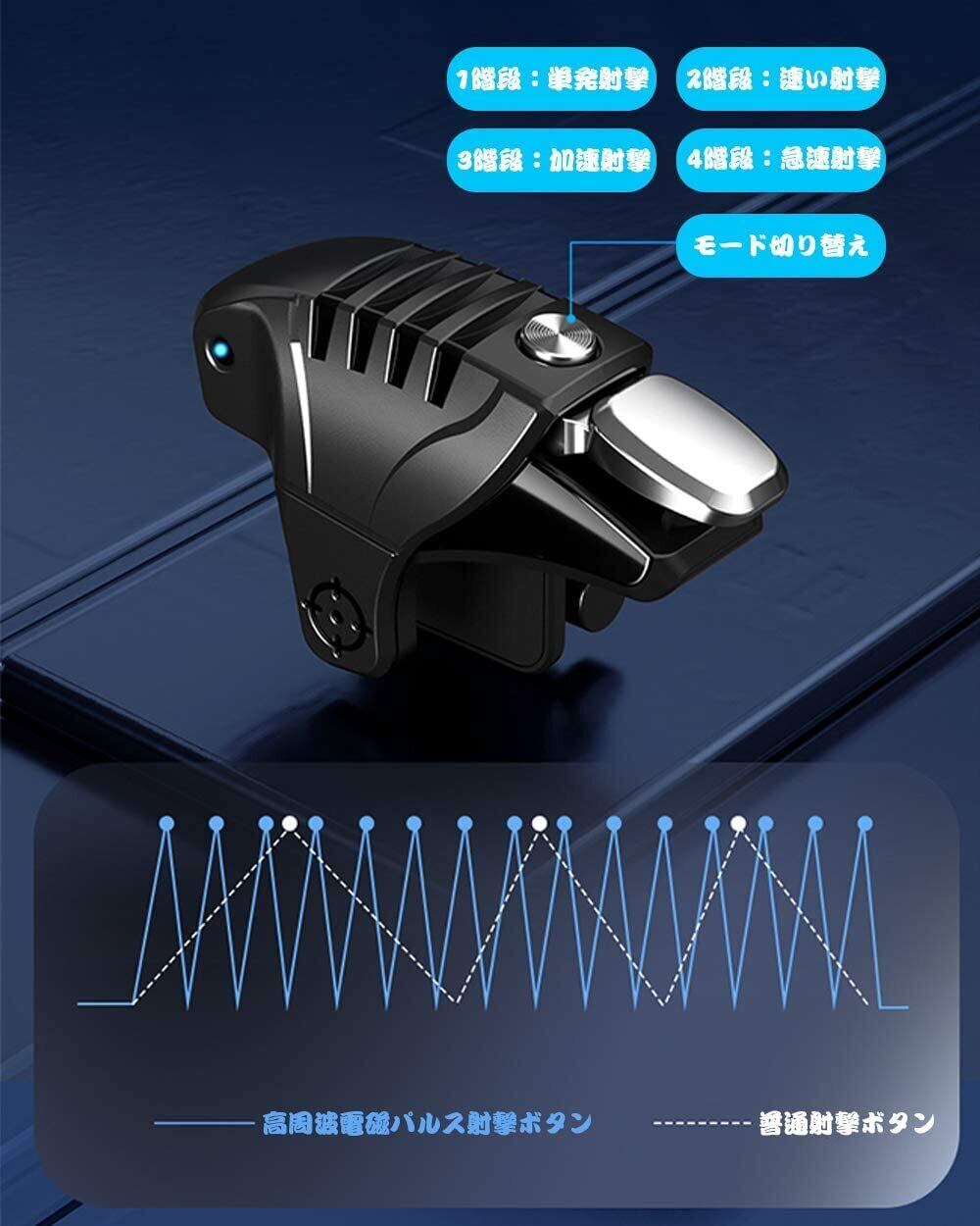 【連射版】 荒野行動 PUBG COD MOBILE コントローラー 電撃連打24連打 1秒6/12/18/24回タップ 指サック iPhone/Android対応 弾道補正 黒軸 高周波電磁パルス伝導システム 射撃ボタン 高感度 高精度 エイムアシスト