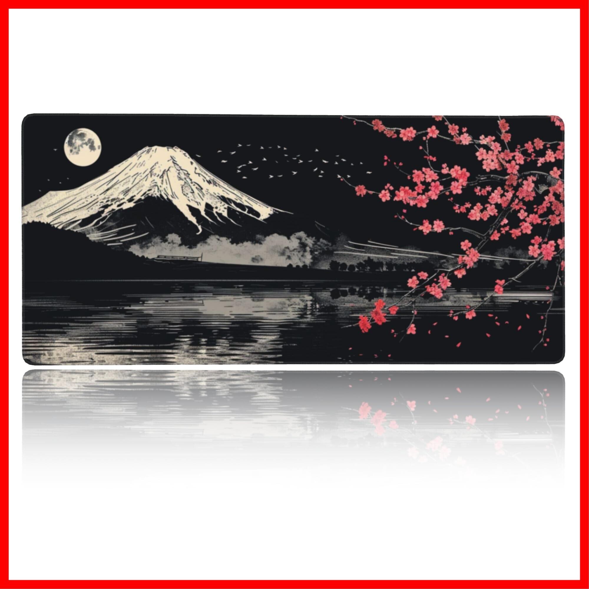 【新春セール】マウスパッド 大型 ゲーミング 和風 富士山 桜 ブラック マウスマット デスクマット 特大 おおきい キーボードパッド ゴム底 エレコム 光学式 マウス対応 滑り止め 耐久性 良い おしゃれ かわいい 防水 サイバーカフェ オフィス最適 適度な表面摩擦 40cm X 90cm | Cherry Blossoms