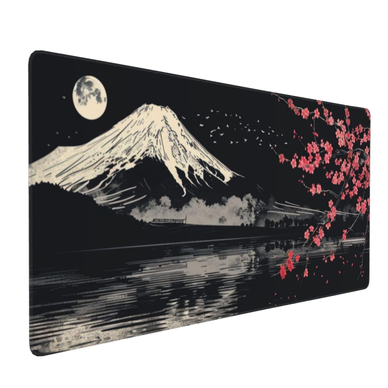 マウスパッド 大型 ゲーミング 和風 富士山 桜 ブラック マウスマット デスクマット 特大 おおきい キーボードパッド ゴム底 エレコム 光学式 マウス対応 滑り止め 耐久性 良い おしゃれ かわいい 防水 サイバーカフェ オフィス最適 適度な表面摩擦 40cm X 90cm