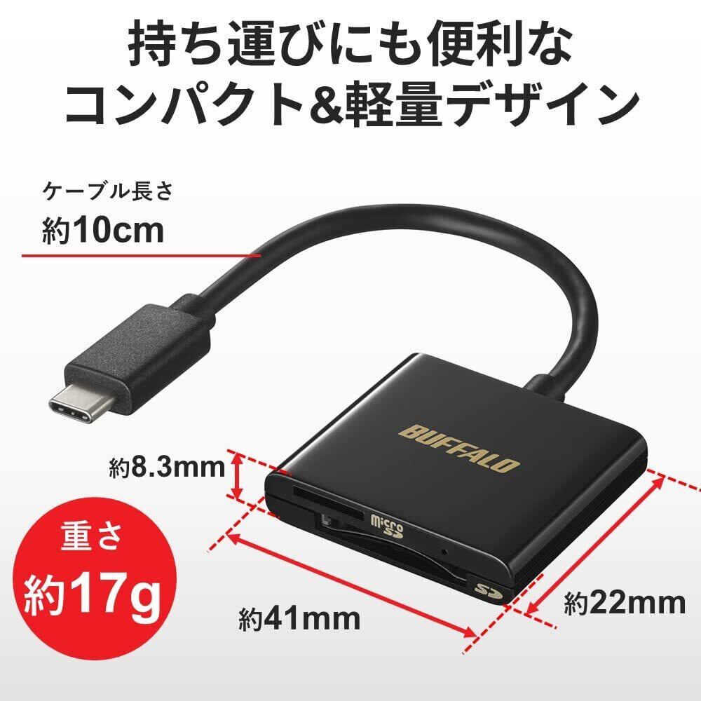 バッファロー USB3.2 Gen1 Type-C カードリーダー 2-in-1 【SD/SDHC/SDXC/microSD/microSDHC/microSDXC/UHS-I 対応 】 iPhone 16 / 16 Pro / 15 / 15 Pro/iPad スマホ タブレット パソコン 写真バックアップアプリ BSCR115U3CBK