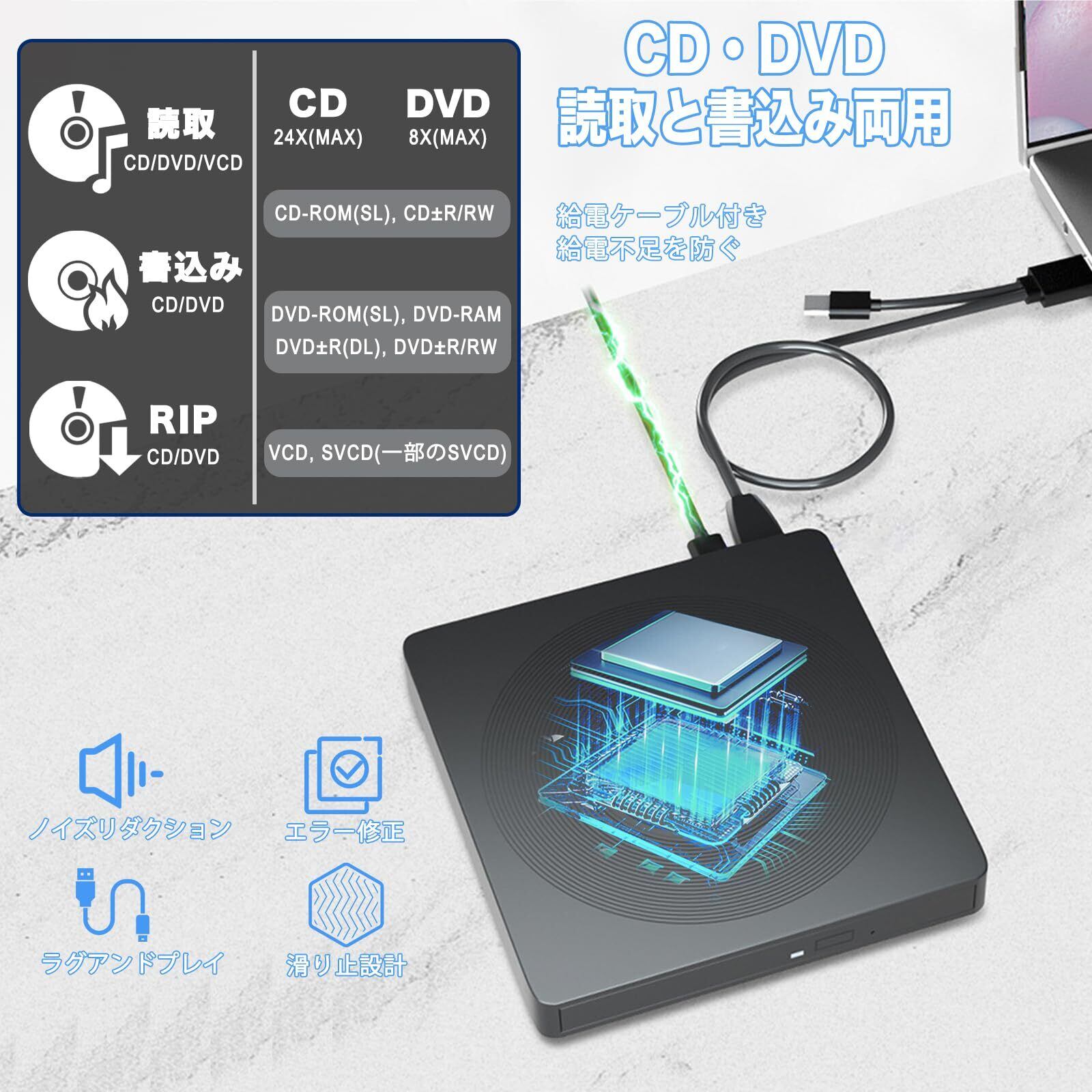 『CD/DVD/VCD読取&書込み』: 優れたドライブチップとUSB3.0バージョンにより、高速の読取&書込み速度(CD 24X最大、DVD 8X最大)を実現し、ノイズを低減し、エラー訂正機能も備えています。VCD、CD-ROM (SL)、CD+R/RW、DVD-ROM (SL)、DVD-RAM、DVD±R (DL)、DVD±R/RWの読取とCD+R/RW、DVD-RAM、DVD±R (DL)、DVD±R/RWの書込みが可能です(ご注意:Blu-ray/CPRMディスクには対応できません)。