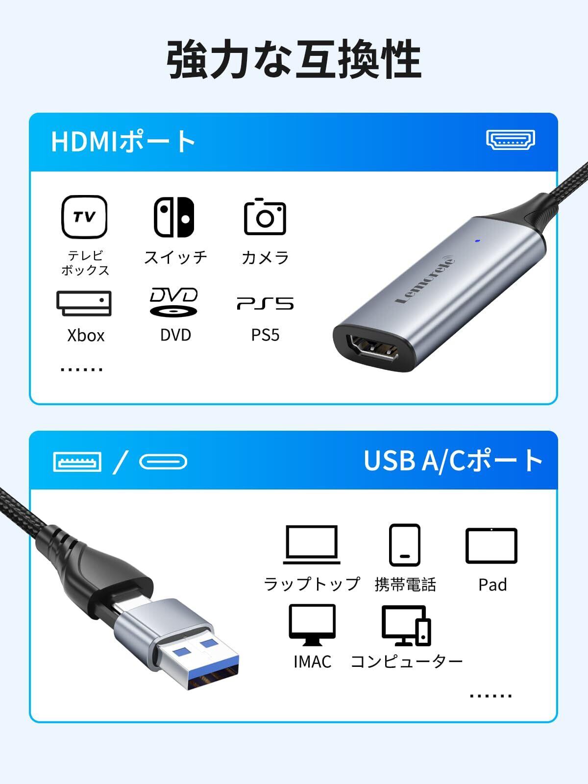 ビデオキャプチャカード キャプチャーボード HDMI Switch対応 ゲームキャプチャー 1080P/4K@60Hz USB&Type C 2 in 1 小型軽量 ゲーム録画/HDMIビデオ録画/ライブ配信用 Windows/Linux/MAC/Android/iPadOS17に適用