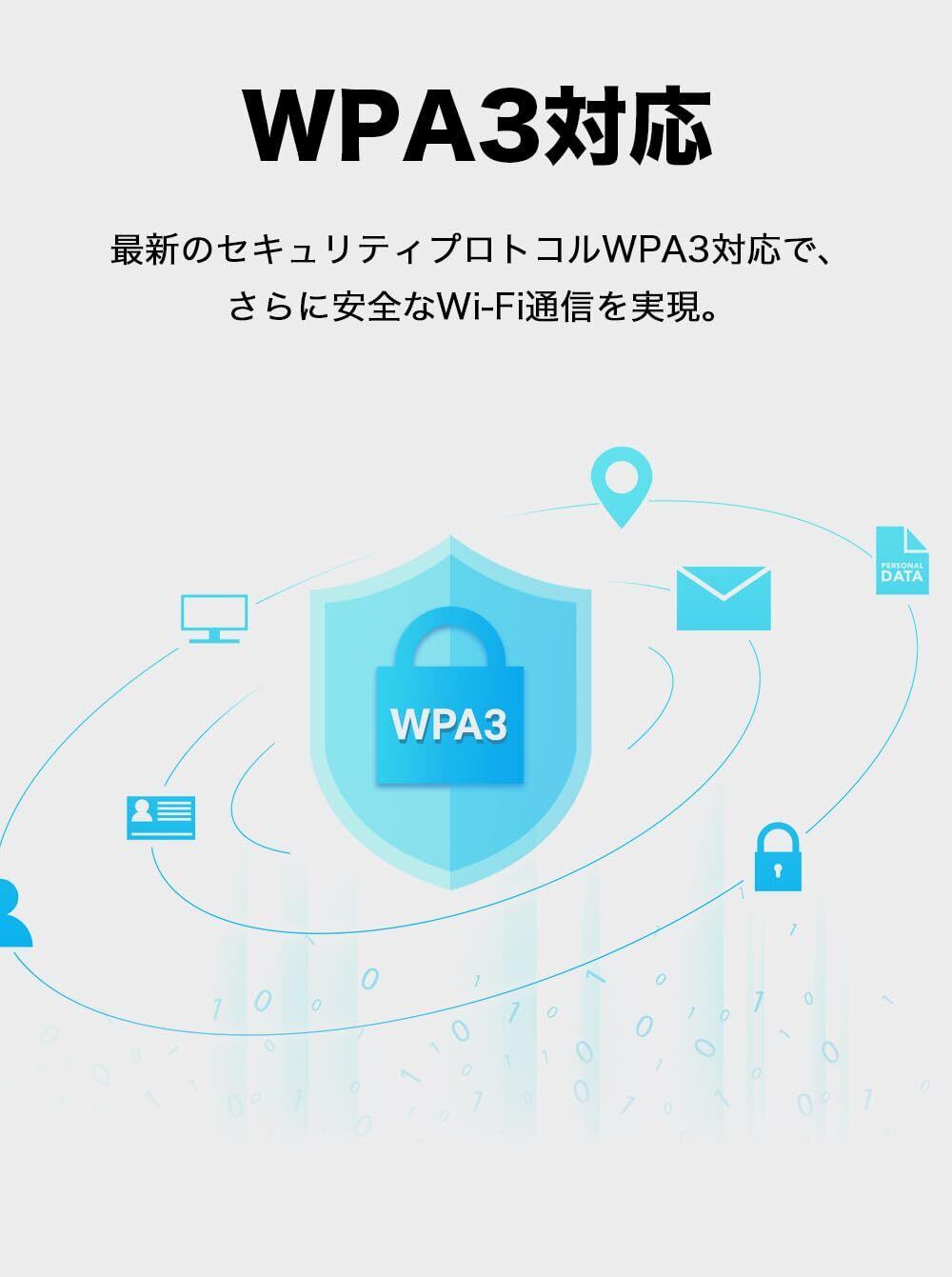 [WPA3対応] 最新のセキュリティプロトコルWPA3に対応。さらに安心した環境でネットワークをご利用いただけます。