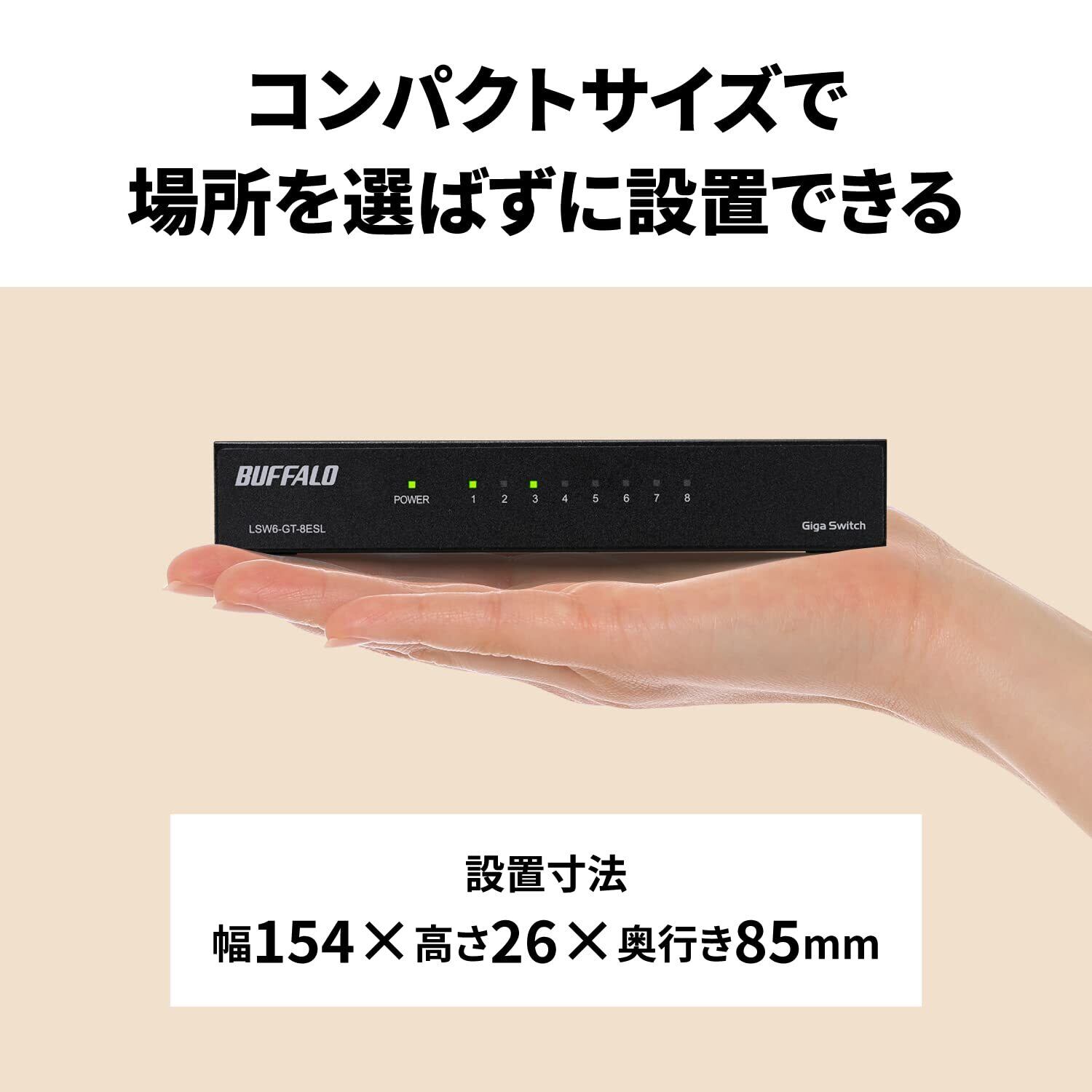バッファロー 8ポート スイッチングハブ Giga 金属筐体 簡易パッケージ 壁掛け設置対応 LSW6-GT-8ESL/NBK