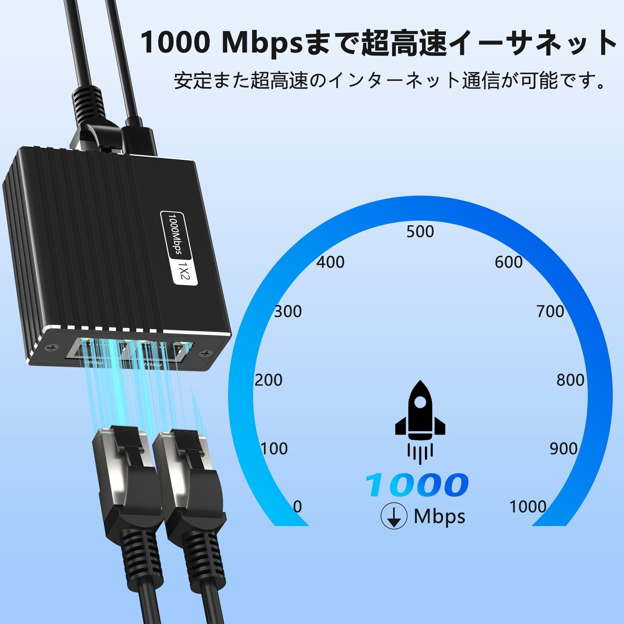 スイッチングハブ LAN ハブ 1入力2出力 LAN 分配器 RJ45 Hub 高速1000Mbps 3ポート増設 2台同時使用 有線イーサネットアダプター ネットワークケーブル 分岐 ネットワーク拡張 二股同時出力 Cat5/Cat5e/Cat6/Cat7/Cat8対応 イーサネットアダプタ 有線中継器 Switch/PS5/PS4に対応
