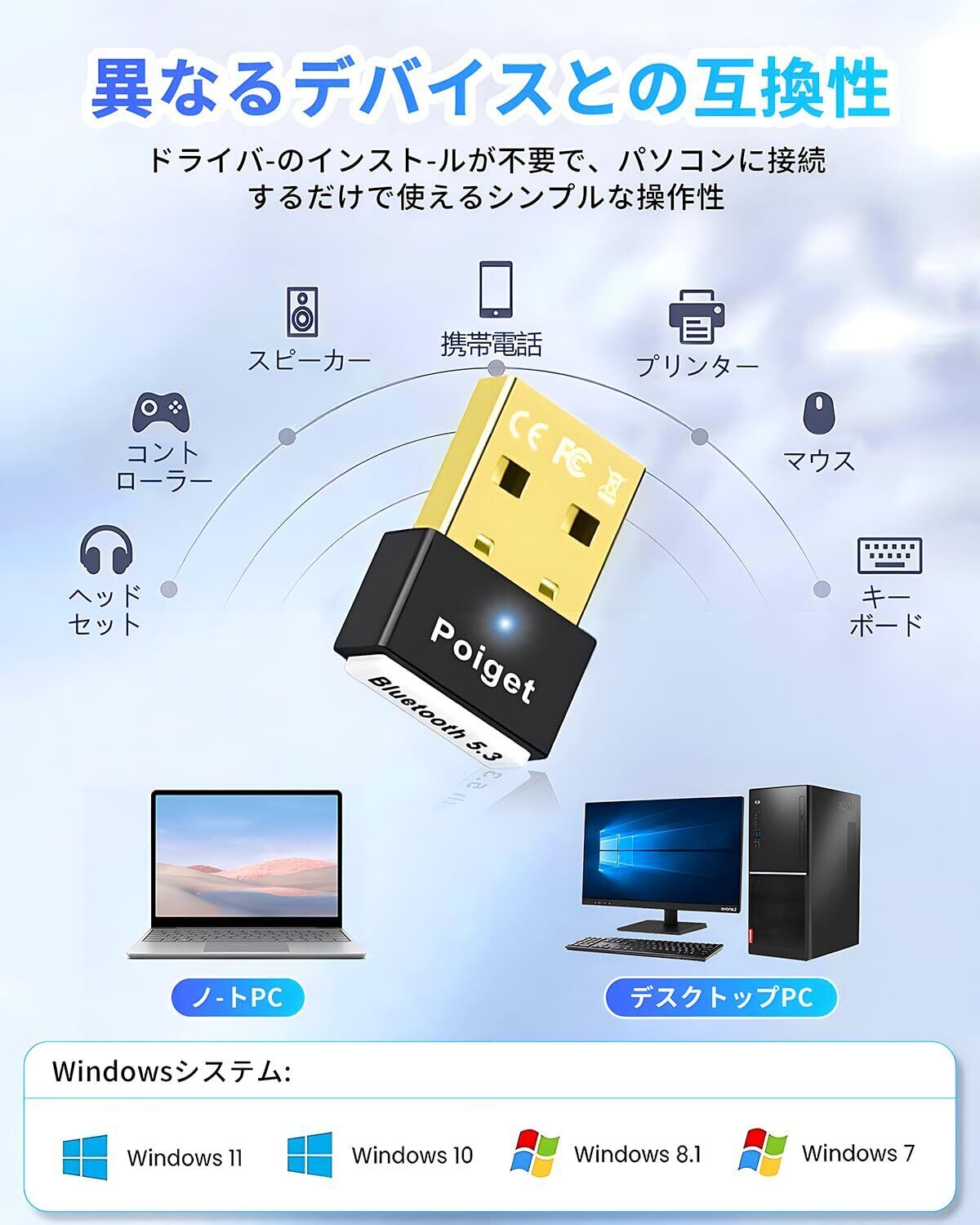 【対応OS&接続簡単挿入】BluetoothアダプタはWindows 11/10/8.1/8.0対応;32/64ビットをサポートします。 どんなドライバーをインストールする必要がなく、パソコンに挿すだけですぐに使用でき、超便利です。
