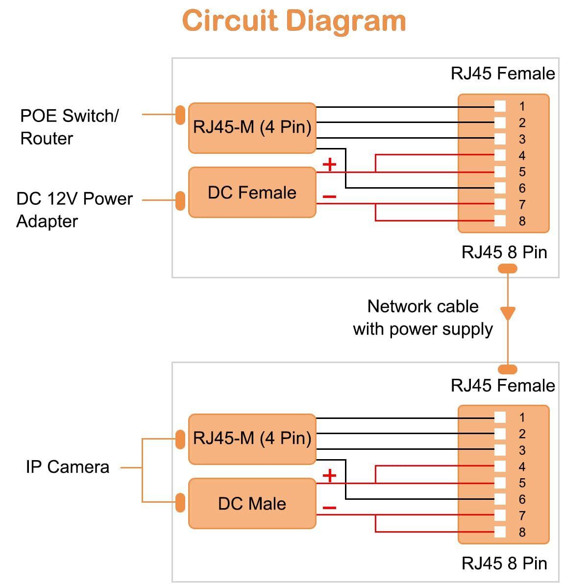注意: 非 PoE スイッチと非 PoE デバイス間の最大 15 メートルの長距離電力伝送に最適なソリューションです。(ケーブルの品質とデバイスの電力消費量によって異なります)。電圧降下がある場合は、配線が遠すぎることが原因です。DC12V または DC15V の配線距離は 10 メートル以下です。
