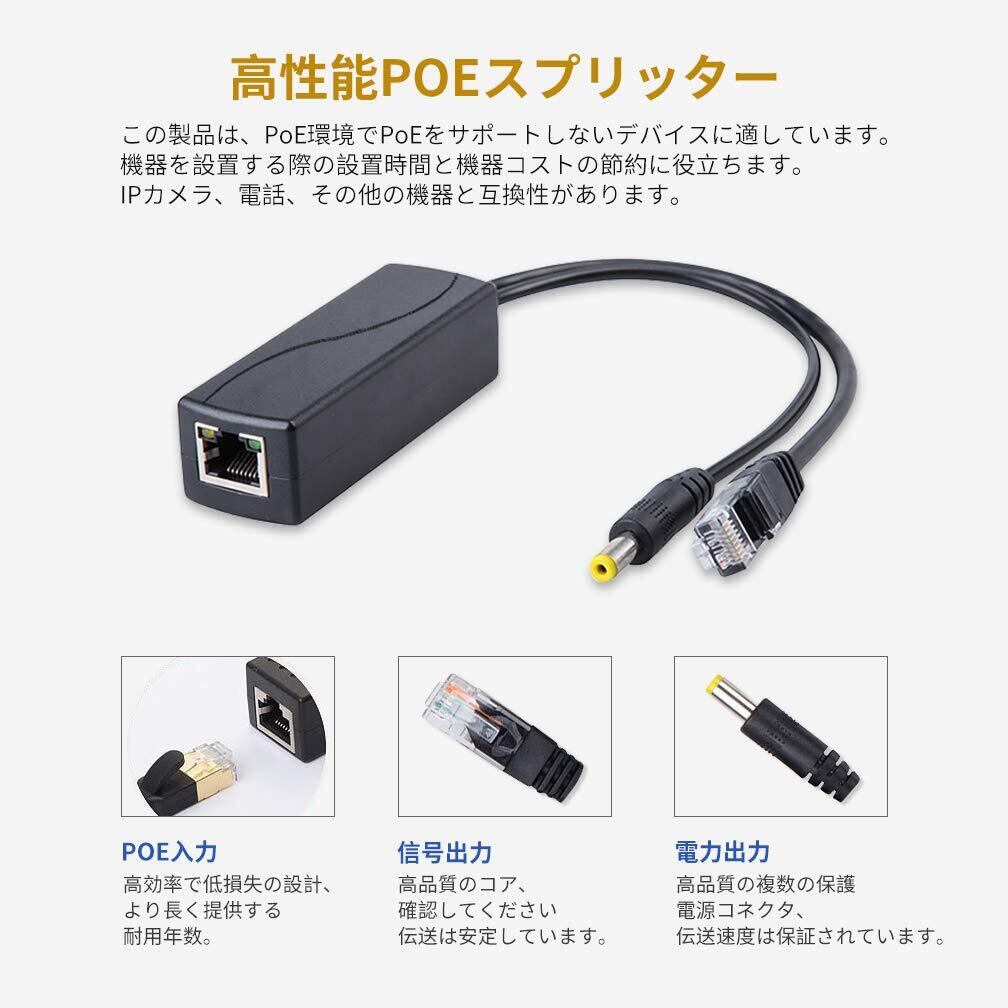 POEスプリッターアダプター 国際標準IEEE802.3afをサポートします。POEポートは10/100 / 1000Mbpsデータ送信をサポートします。 伝送速度:10/100Mbps