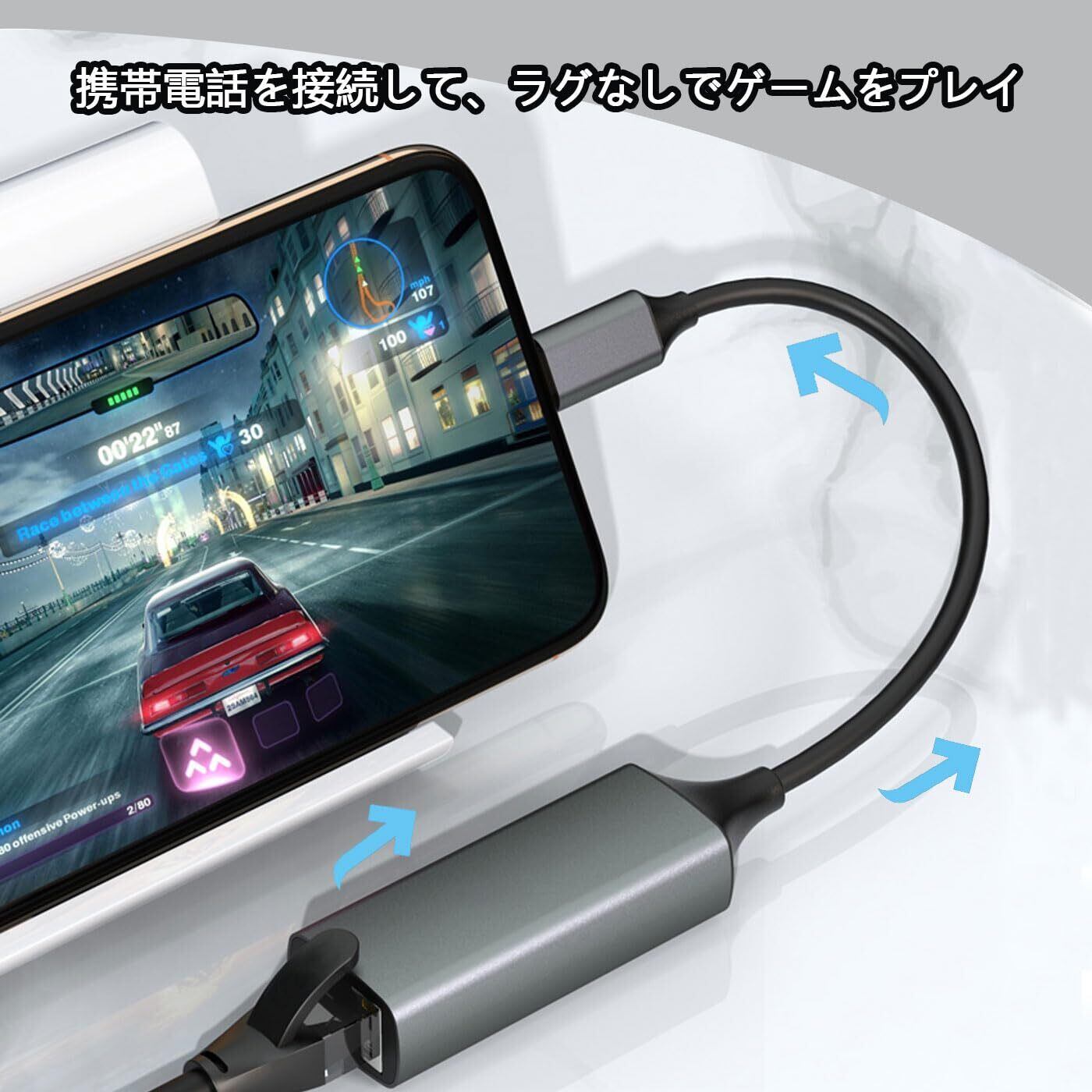 Lightning 有線LANアダプター 30-100/Mbps 高速安定伝送、i-Phone 有線 LAN コネクタ i-Pad/i-Phone 14/13/i-Phone 14Pro/12/XR などに対応 プラグアンドプレイ 電源不要 (グレー, 21cm)