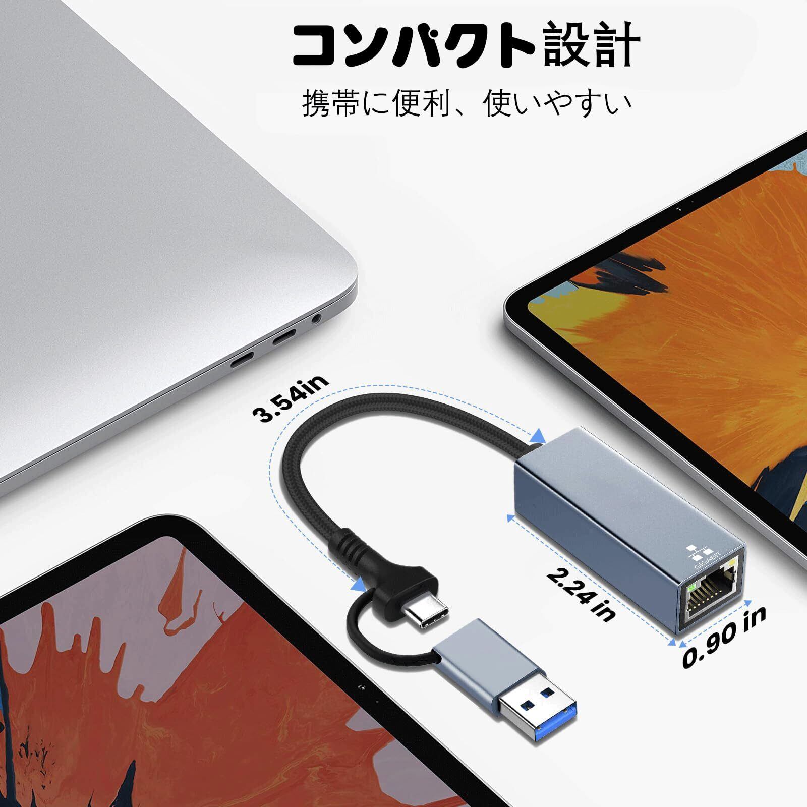 USB 3.0/USB-C ギガビットイーサネットアダプター 有線LANアダプタ 1000Mbps (10/100/1000Mbps対応) RJ45ポート搭載 プラグアンドプレイ MacBook Pro/Air (2020-2022)/Windows/Linux 多機種対応 サージ保護機能 コンパクト設計
