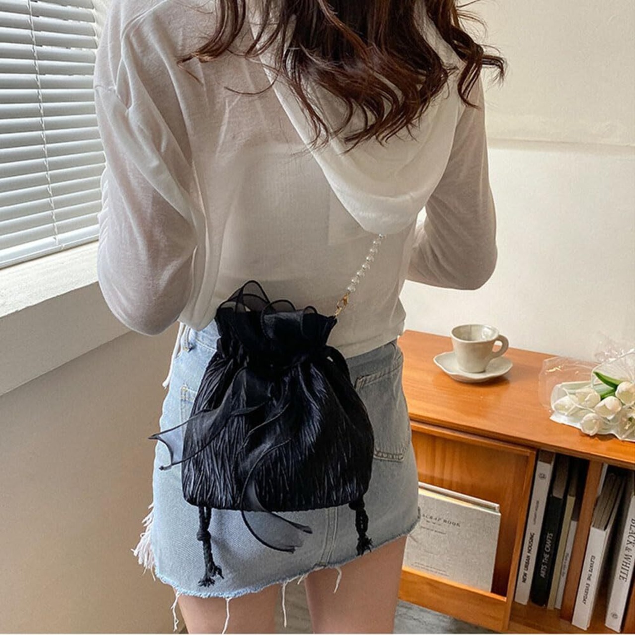 [EOMECUIGAO] 浴衣 バッグ 巾着ショルダーバック パール リボン ミニ クロスボディ 通過儀礼 セレモニー ドレス 着物