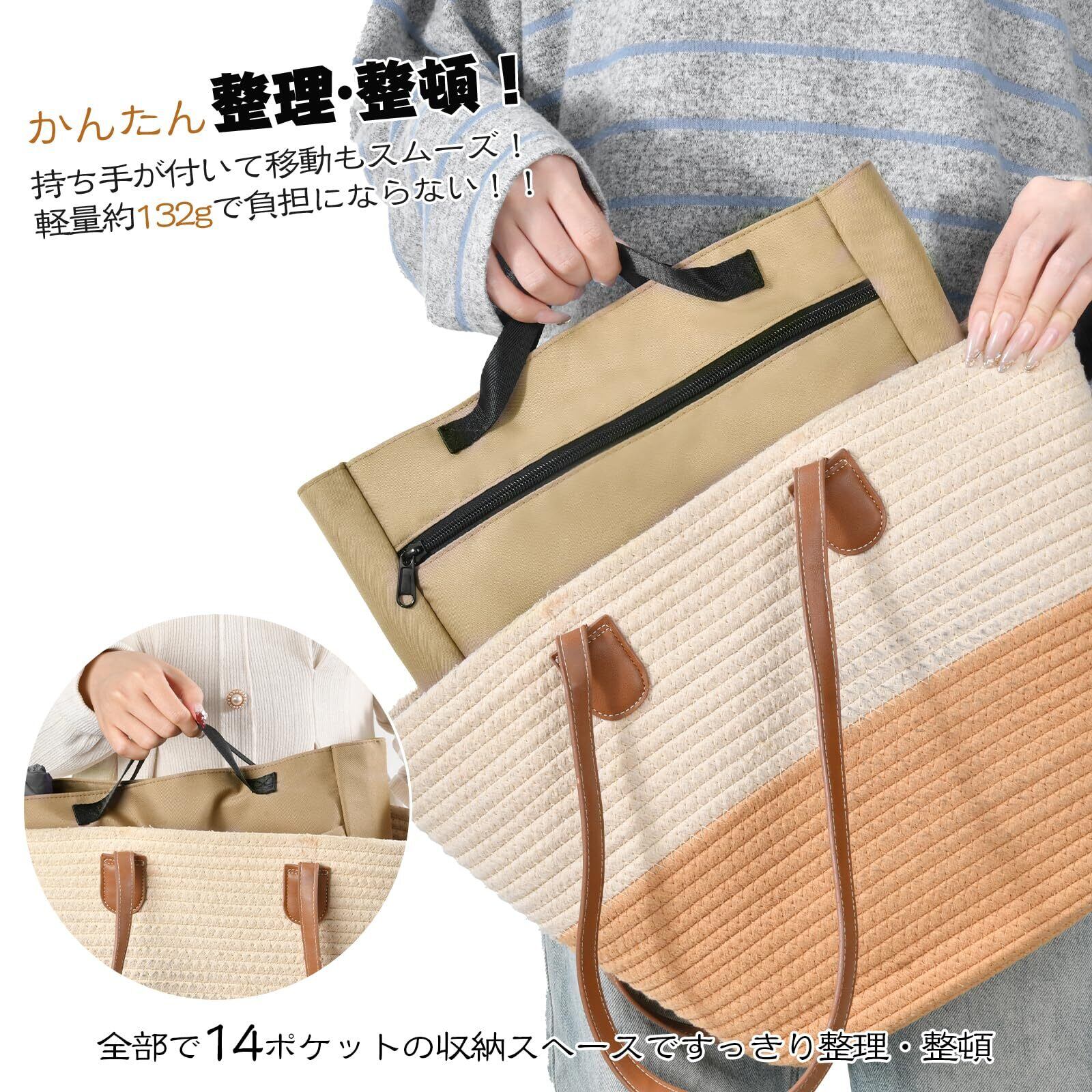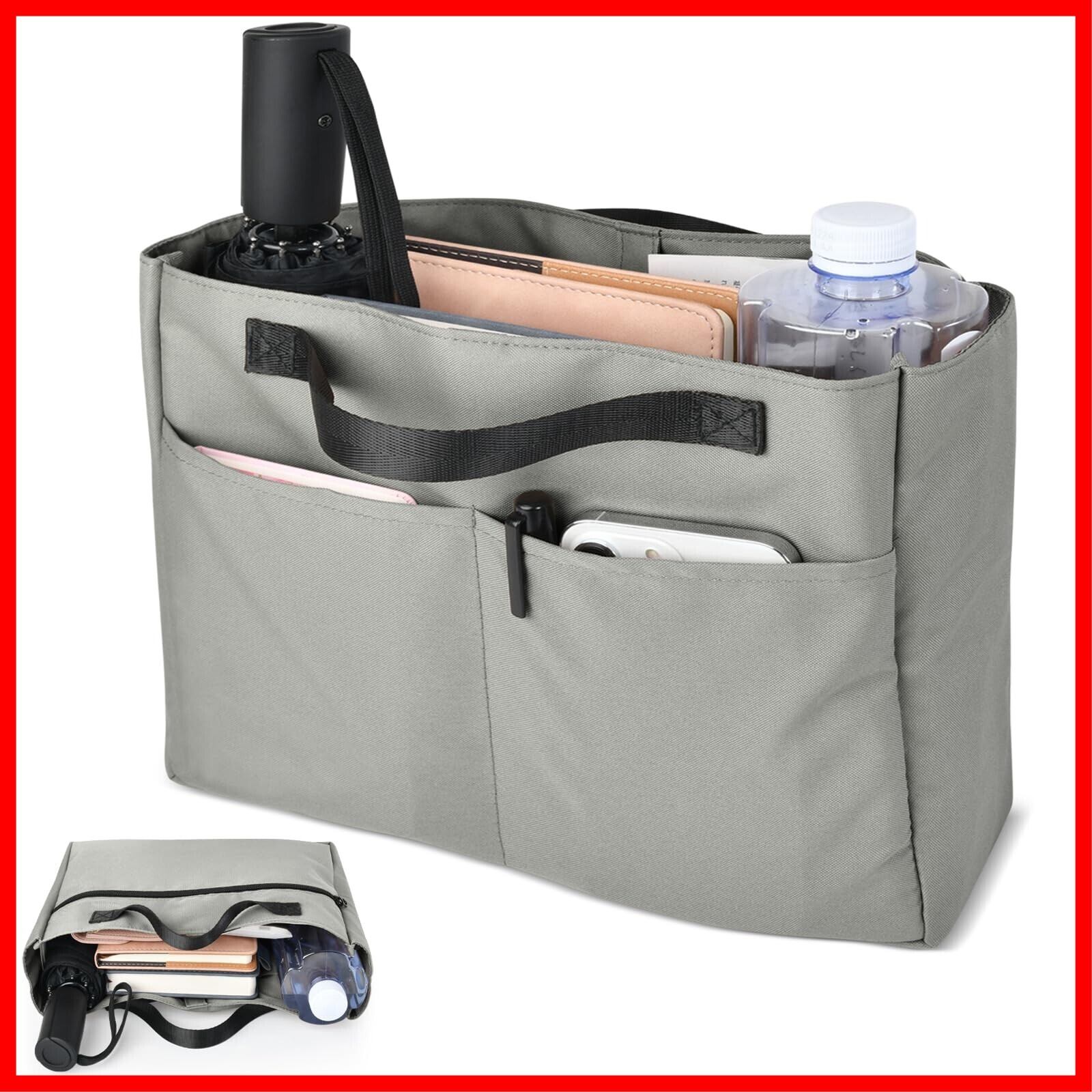【持ち手がついたバッグインバッグ】バッグの中身もかんたん整理整頓でき、持ち手付きでバッグ間の移動もサッとできる6ポケット収納スペースがあるバッグインバッグです。トートバッグ、トラベルバッグ、ショルダーバッグ、ハンドバッグなどに適しています。A4サイズのバッグやポケットの少ないバッグのインナーバッグとして最適です。バッグインバッグごと移動できるので、別のバッグへ中身を移すのも楽々。スポーツバッグやスーツケース、様々な赤ちゃんグッズを入れるマザーズバッグでも大活躍してくれます。