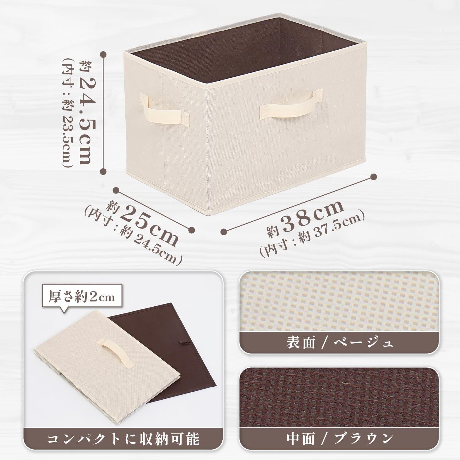 【商品仕様】:外寸/約幅38×奥行25×高さ24.5cm(内寸/約幅37.5×奥行24.5×高さ23.5cm)、カラー/ベージュ×ブラウン、材質/ポリプロピレン・紙、内容/3個セット