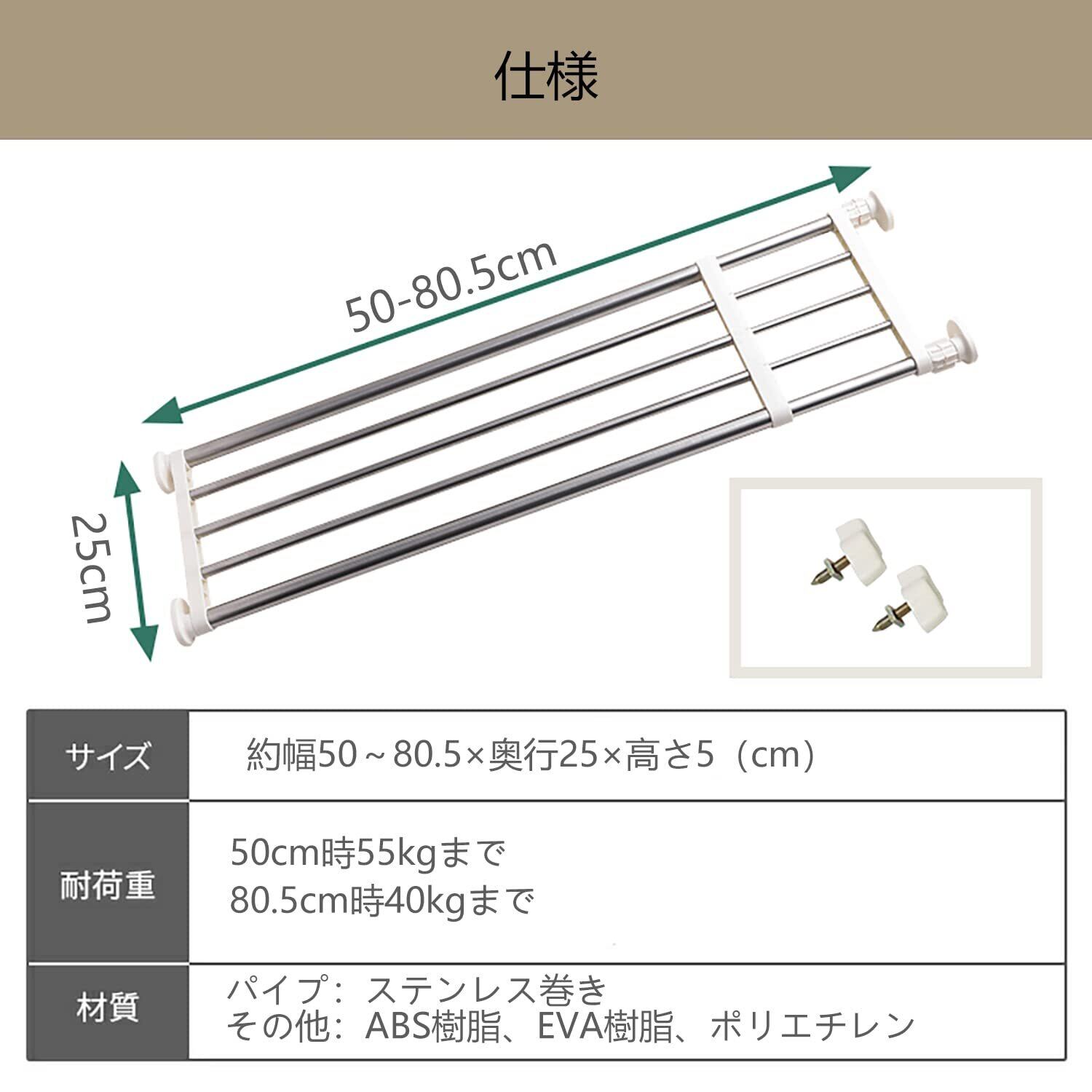 BAOYOUNI 伸縮式 つっぱり棚 スリム 突っ張り棚 つっぱり棒 棚 伸縮棚 突っ張り ホワイト 取付幅50-80.5cm