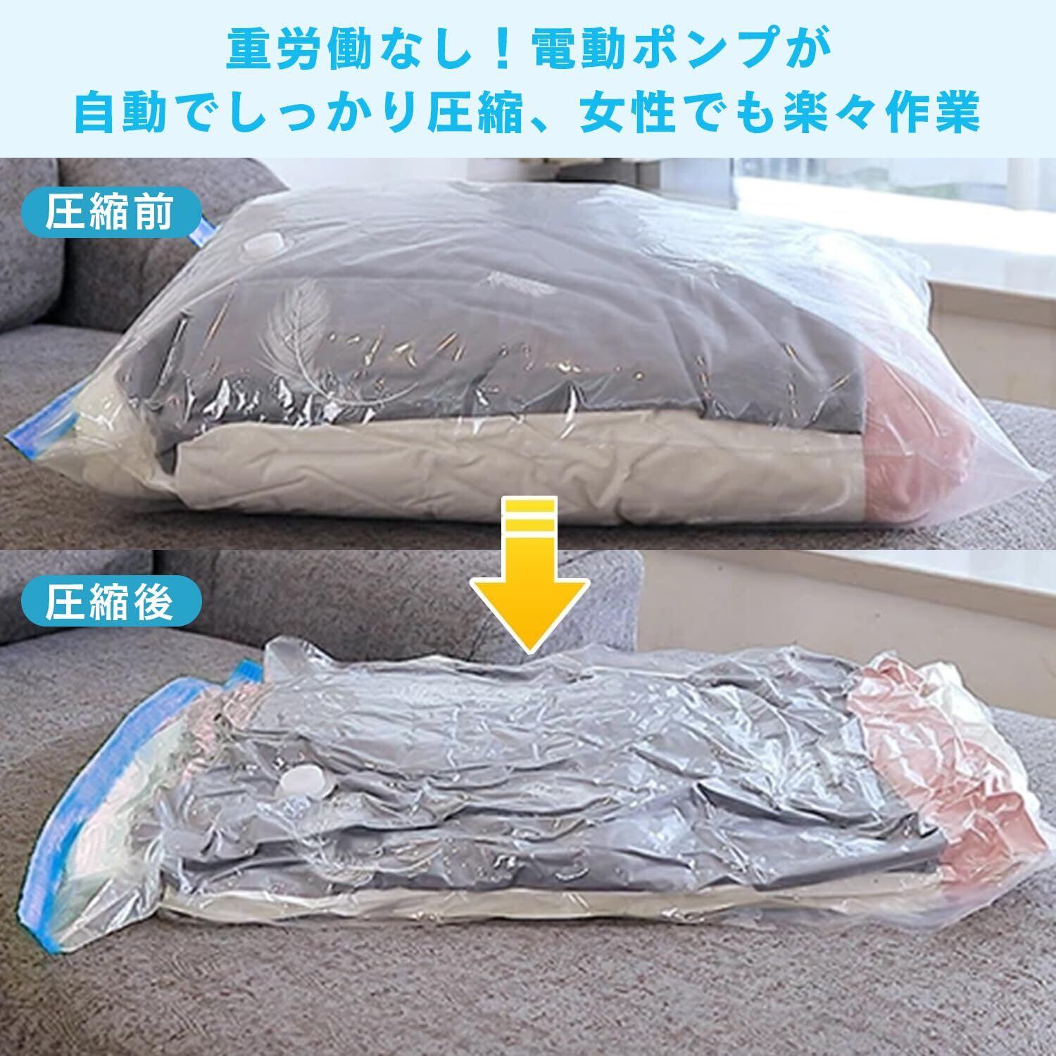 布団圧縮袋【電動ポンプ付き】【7枚セット・1*S/ 2*M/ 2*L/ 2*XL】 掃除機不要 旅行用 衣類 毛布 洋服 ふとん 特大サイズ 省スペース 高密封性 防湿 防塵 防臭 防カビ ダニ対策 収納/引越し/衣替え/旅行/出張ふとん圧縮袋 1*S(40×60cm)/2*M(60×80cm)/2*L(80×100cm)/2*XL(100×120cm)