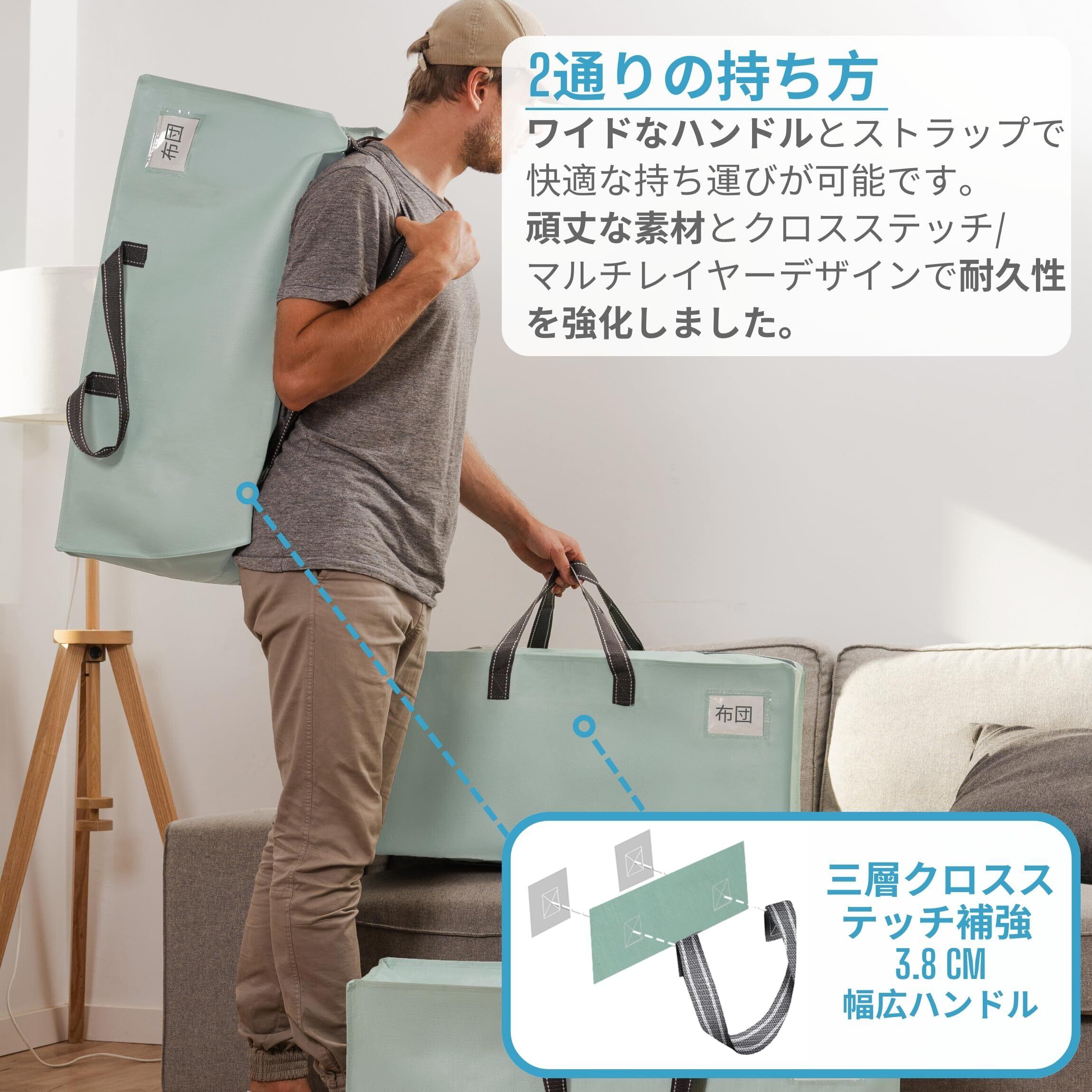 VENO 布団収納袋 リュック型 背負える 引越し用ダンボールの代替 88L大容量 布団袋 耐久 耐水 折りたたみ 衣装ケース 収納ケース 引越しバッグ 布団収納 衣類収納 押入れ収納 キャンプ 旅行 (ライトグリーン 4枚セット)