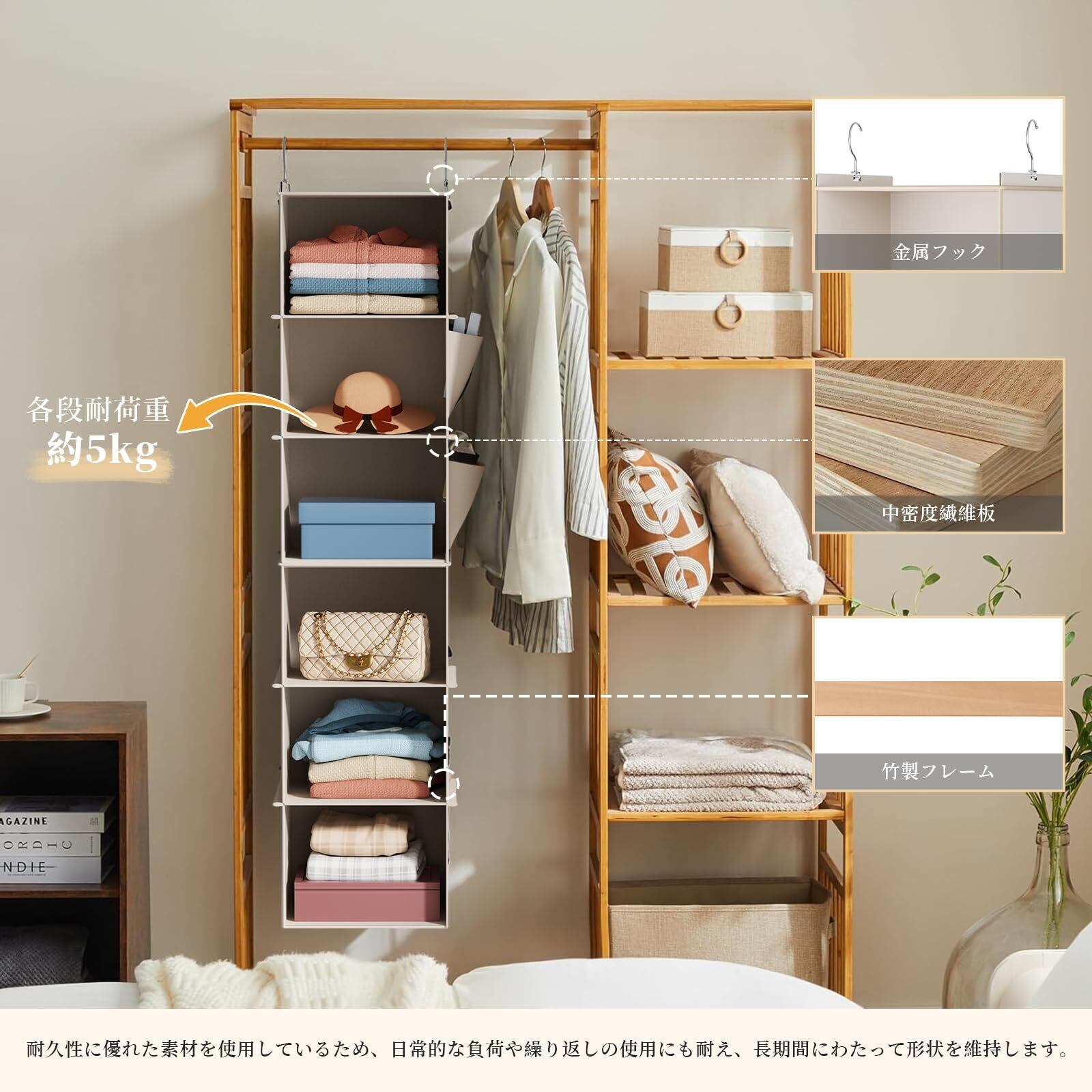 【優れた素材・長持ちする】竹製インサートとハニカムボードが入って、耐久力と荷重が強く、形が変形しにくいです。各段耐荷重5kg、大容量収納ができます。