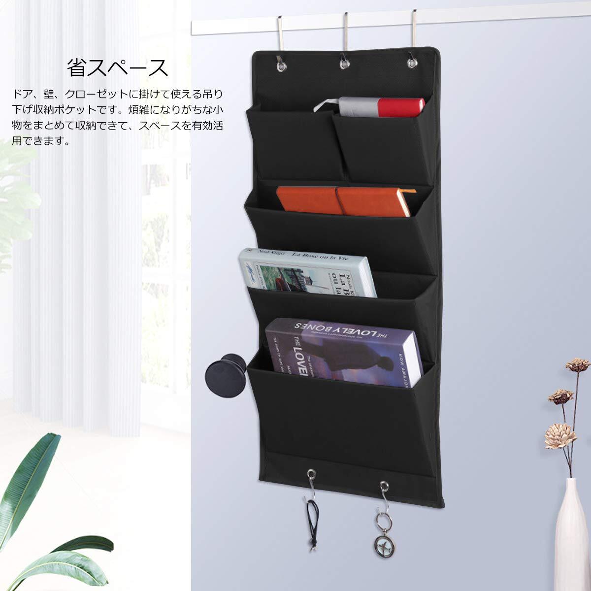 ArcEnCiel ウォールポケット 壁掛け収納式 ドアハンガーポケット ドア掛け 吊り下げ収納ポケット 4段 5ポケット a4 小物入れ 収納式ポケット 書類 雑誌 はがき 手紙 レター リモコン 日常雑貨 玄関 事務室 ブラック