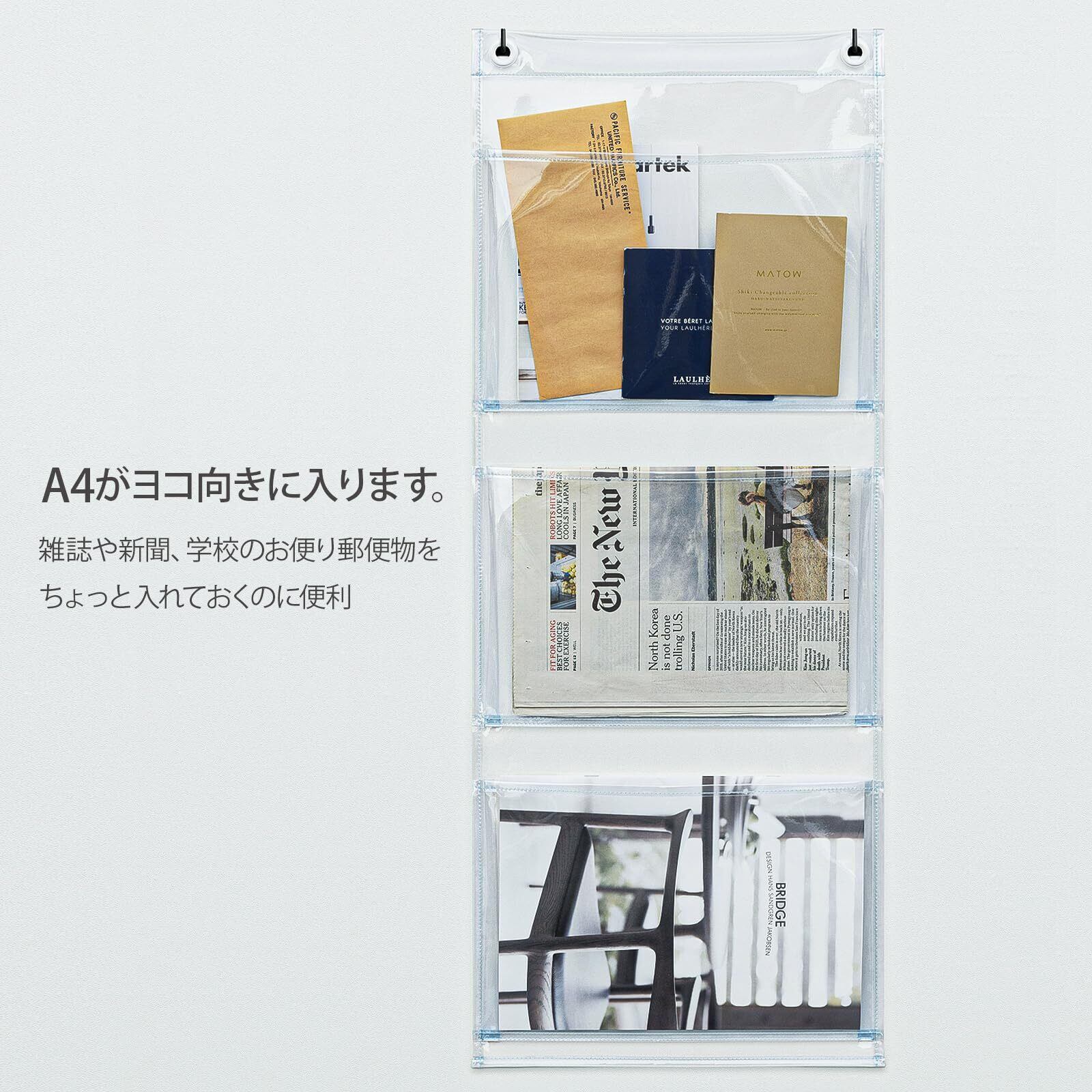 日本製 SAKI(サキ) ウォールポケット A4ヨコ・3P クリア W-109
