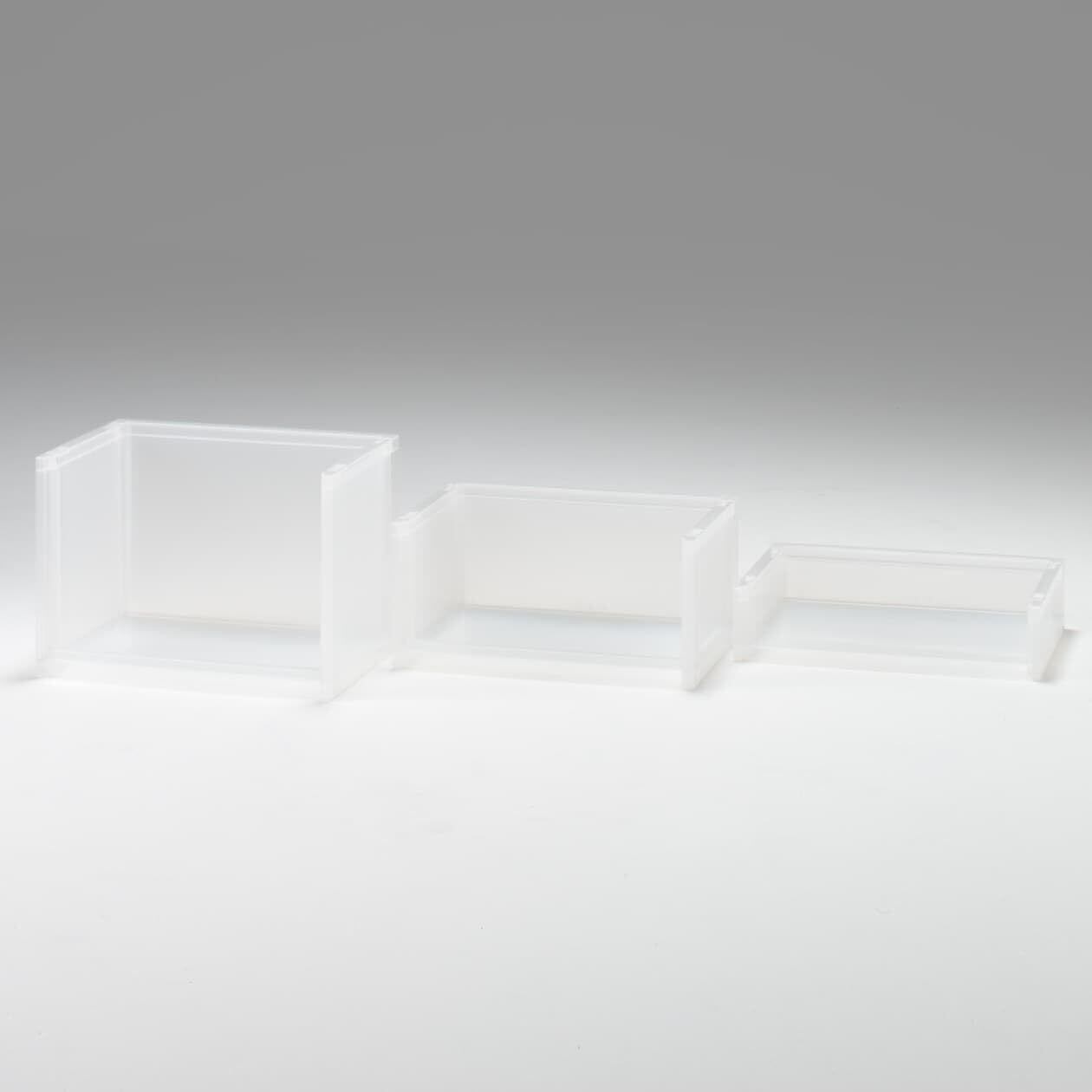 ポリプロピレンでオープン型の収納ラックです。積み重ねもでき、シンク下などの隙間の収納をきれいに整理できます。
