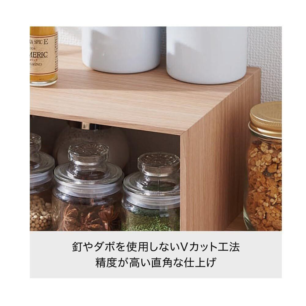 様々なシーンの魅せる収納に高級感あふれる木目調ラック。 住宅建材などに用いられるVカット工法が生み出したコの字状ラック。 薄くて繊細な素材感が魅せる収納と合理的な空間活用を実現します。