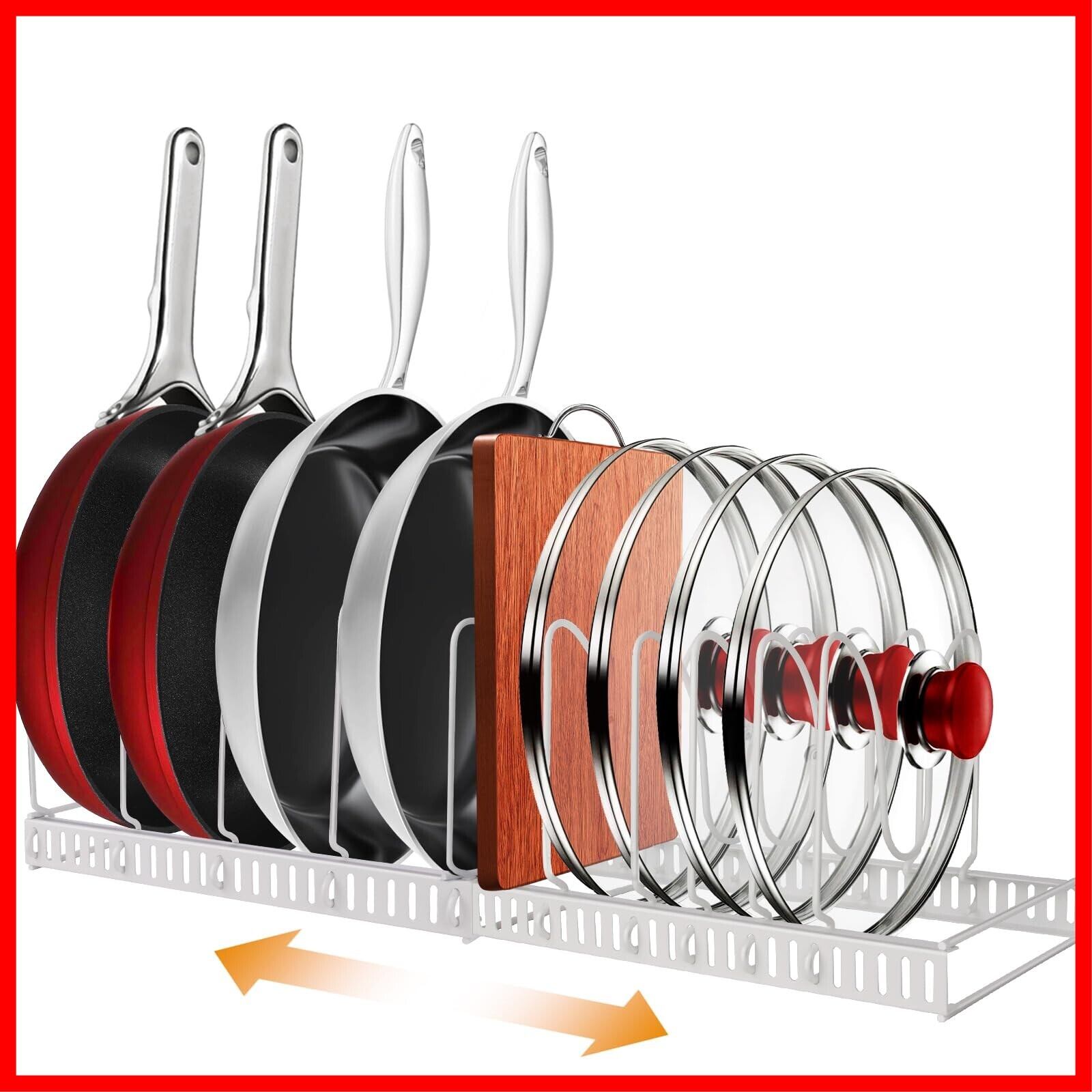 【特価セール】HOTOZON 鍋・フライパンラック 伸縮式 10本仕切りパーツ付き キッチン収納 シンク下/引き出し収納 簡単組み立て まな板・蓋置き対応 省スペース設計 (ホワイト) | Cherry Blossoms
