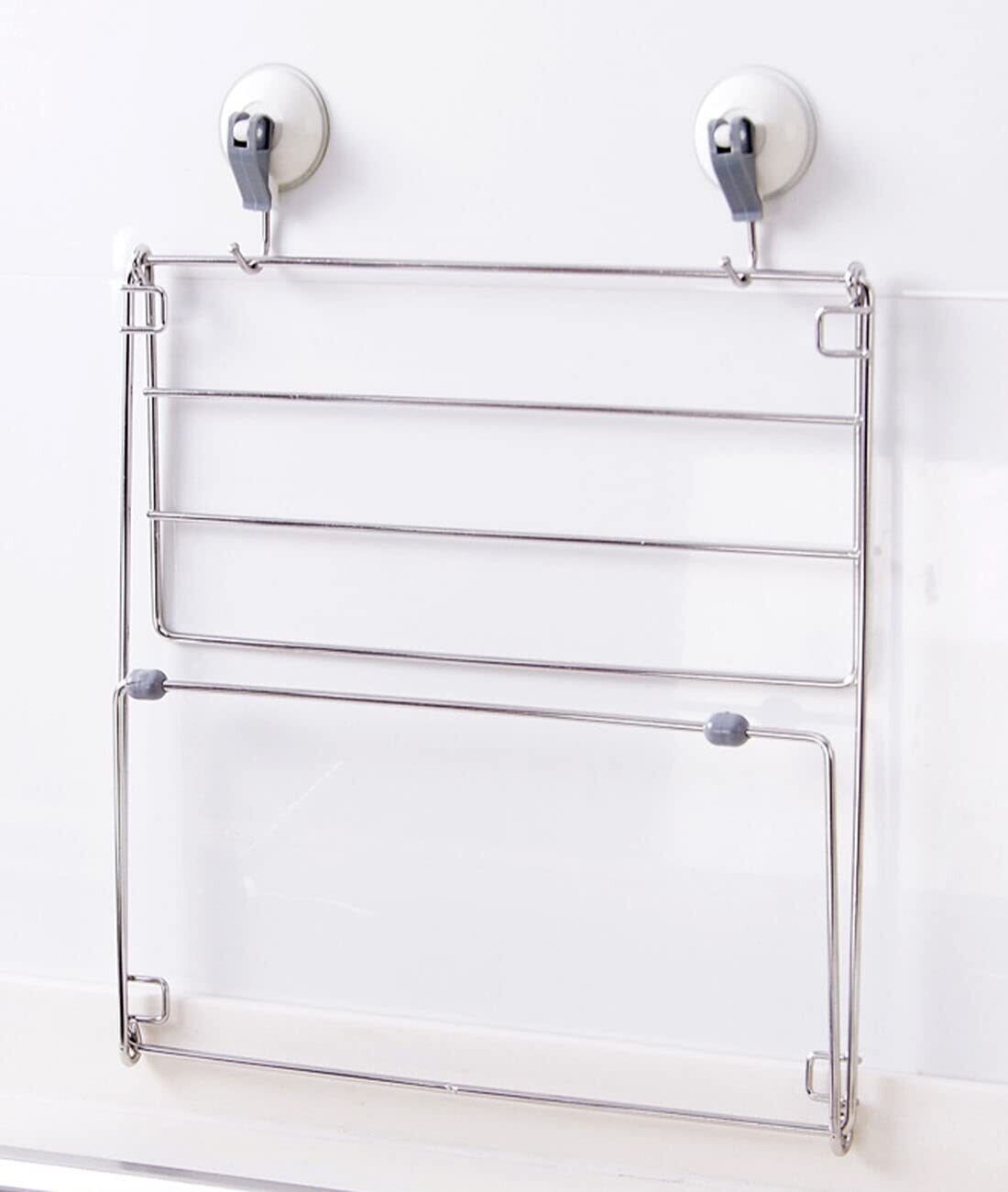 YTCYKJ タオルラック 1個入り タオルホルダ ふきんハンガー水切り ふきん掛け 布巾と雑巾ハンガー スポンジ置き スタンド式 多機能 物干し 折りたたみ 小型 軽量 お手入れが簡単 便利性 洗濯物干し 組立式 室内用 タオルラック収納 ラック キッチン シンク用品 台所 収納 (1)