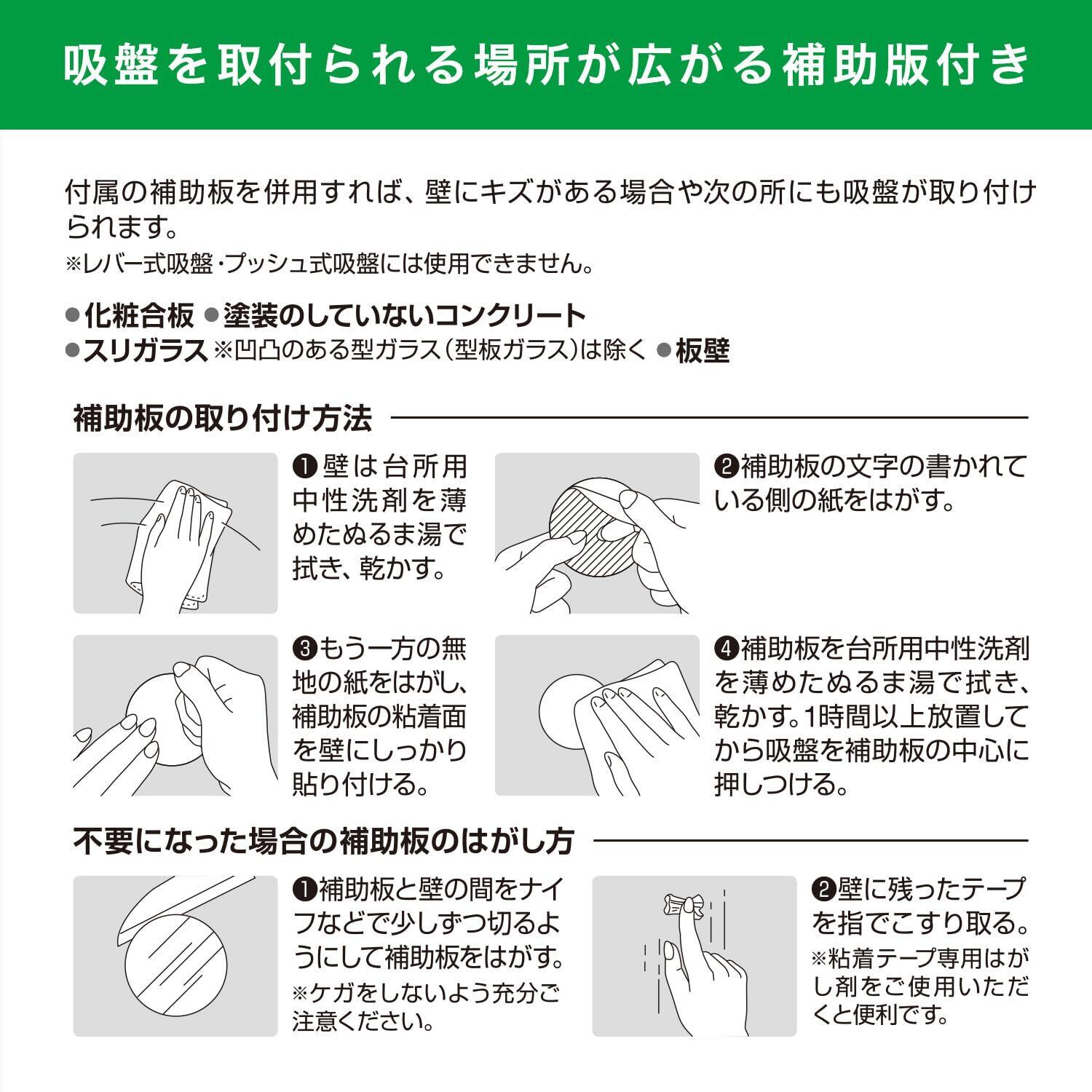 付属の補助板を併用すれば、壁にキズがある場合や次の所にも吸盤が取り付けられます。※レバー式吸盤・プッシュ式吸盤には使用できません。