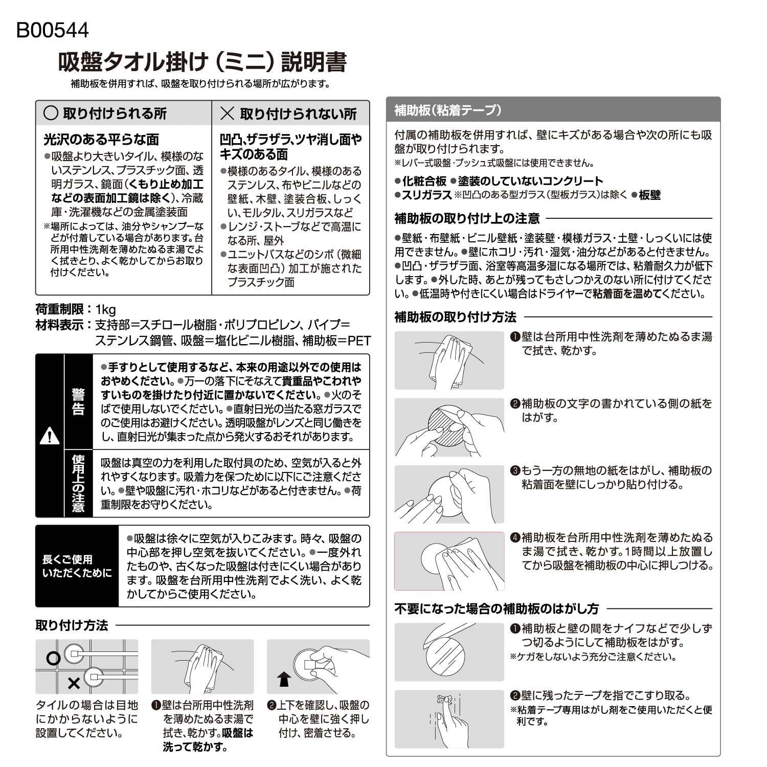 吸盤 タオル掛け ミニ ステンレス 補助板付き 全長 26.5cm(干幅20cm) 耐荷重1kg