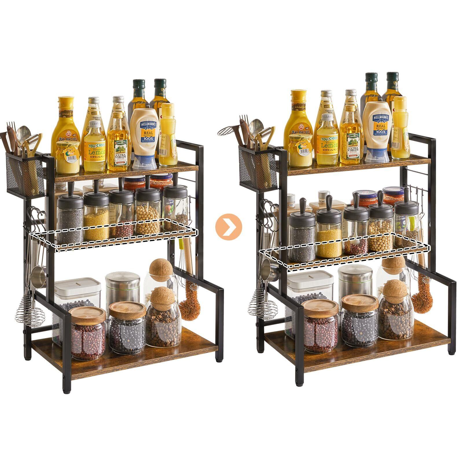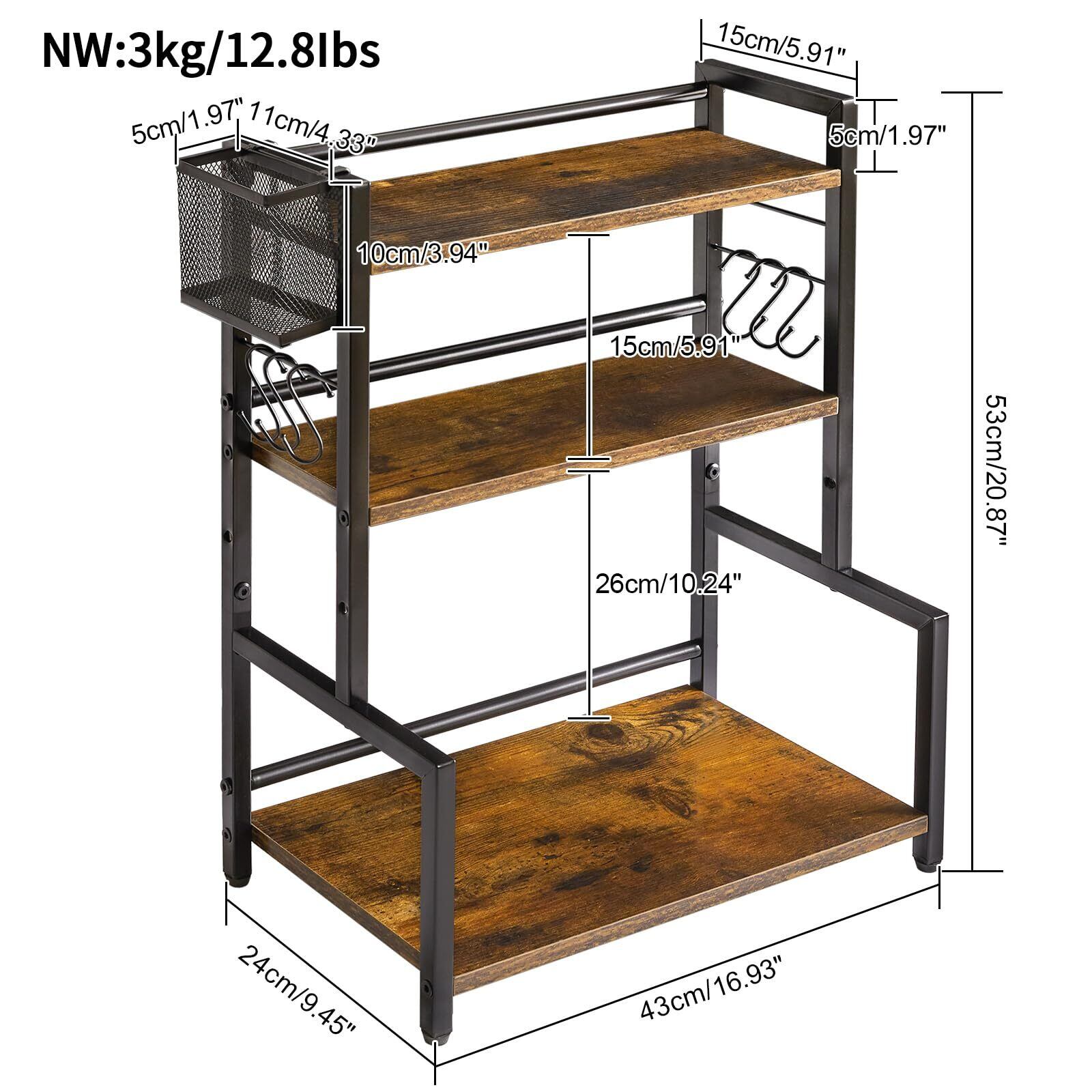 YMYNY 調味料ラック 3段収納ラック大容量 金属バスケットと6つのフック 階段設計のキッチンテーブル棚 高さ調整可能 防水で清潔にしやすい 書棚 卓上整理 キッチン 浴室43 x 24 x 53 cm茶色 JPHSR006H