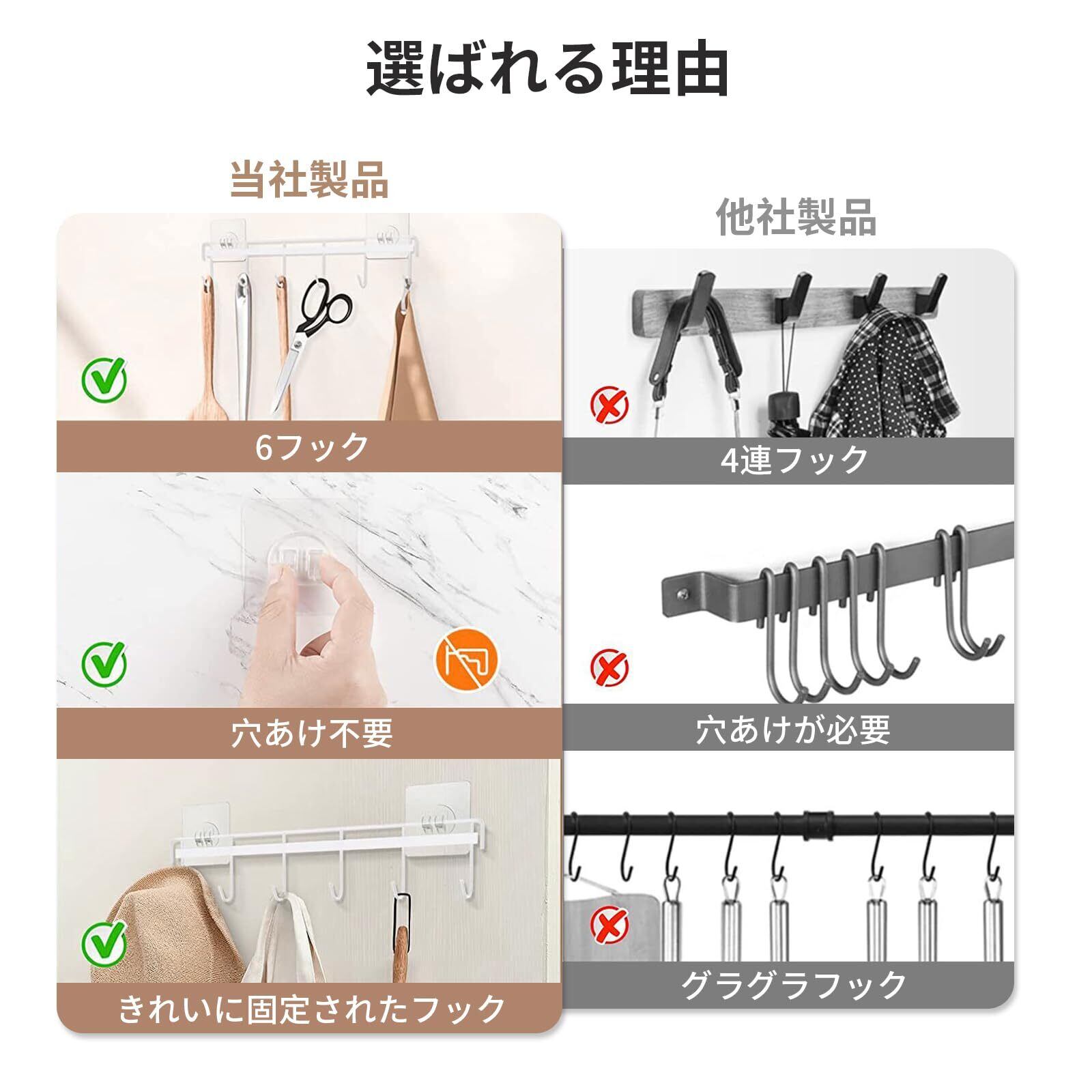 aninako キッチンツールフック ウォールフック フック 壁 傷つけない キッチンツール 強力粘着固定 防水 穴あけ不要 ウォールフック タオル掛け 多機能収納フック 浴室フック 防水 台所ラック 幅32cm