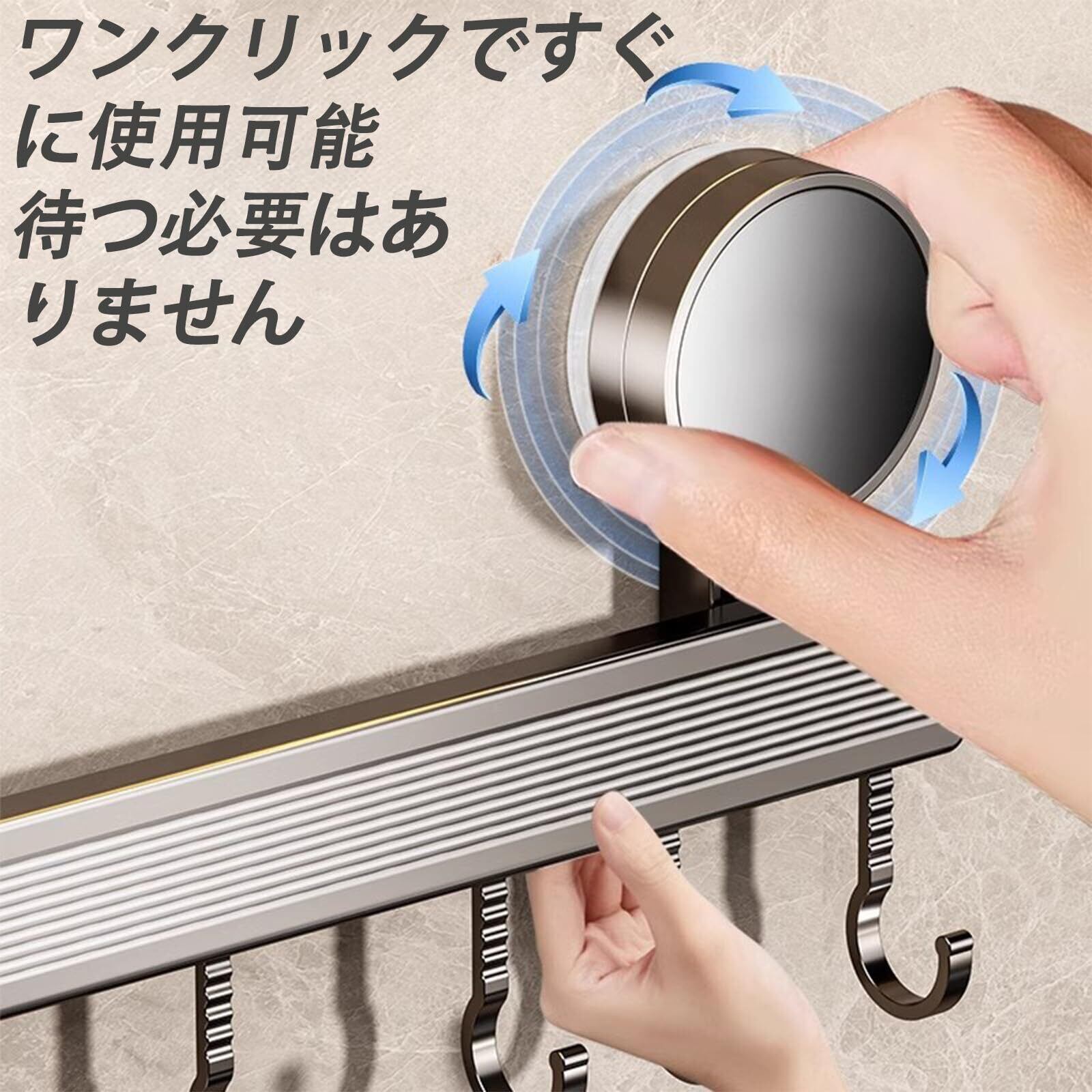 【安定した落下防止】吸盤ハンガーは真空吸盤技術、高品質のアルミニウムとABS材料で作られており、壁のタイルなどの滑らかな表面に優れた吸着性をします。 キッチン、バスルーム、寝室など、どこにでも簡単に設置でき、安定した耐荷重で、衣服が落ちる心配がありません。