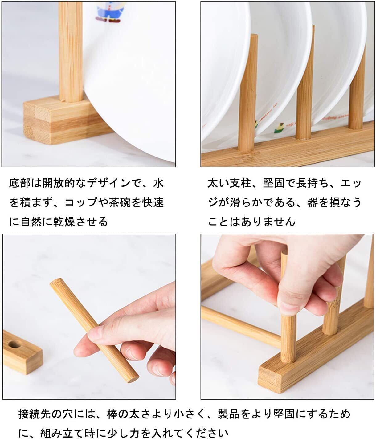 ディッシュスタンド 竹製 木製 まな板スタンド 水切り ラック キッチン 多機能備品棚 コップ CD 本 取り外しできる 組み立てる 収納スタンド 四つサイズ ZBJ001 (四つの格子)