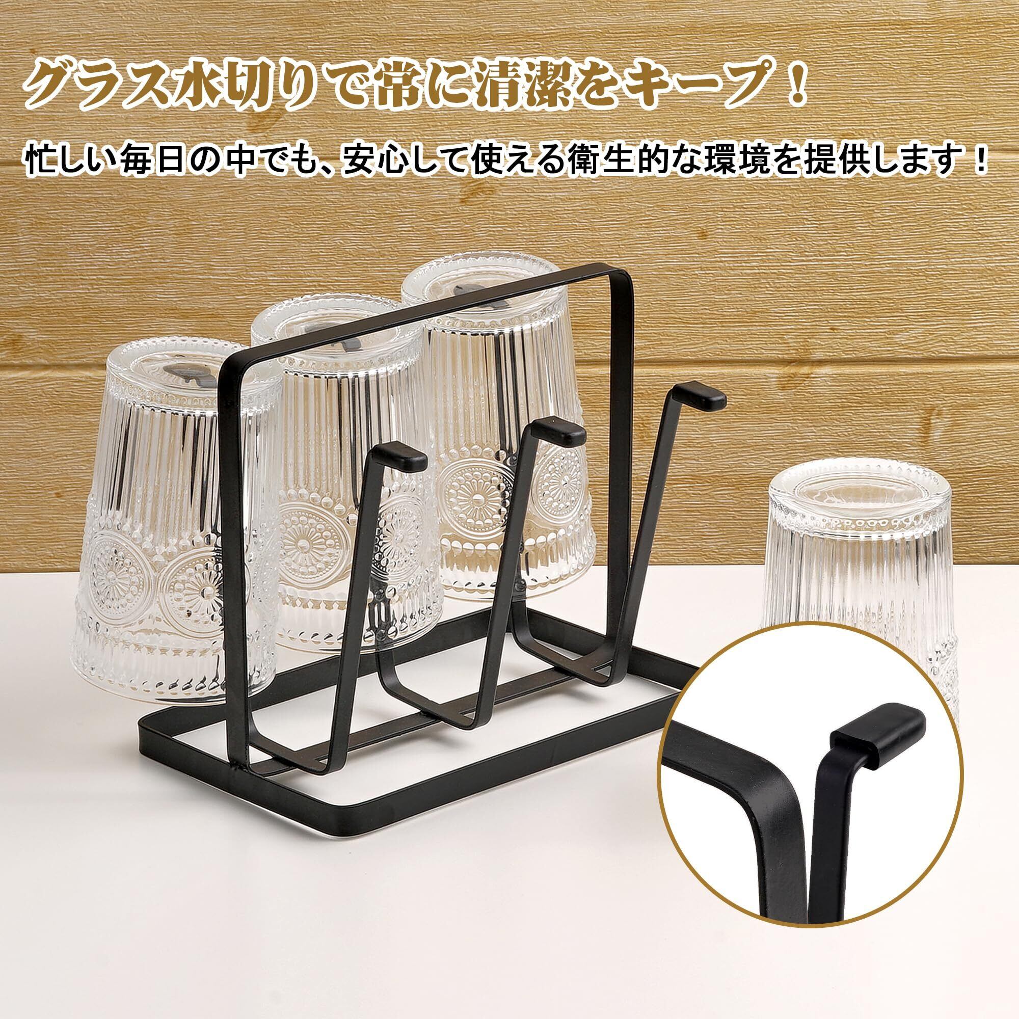 【在庫処分】VECELO グラススタンド 6個掛け シリコン滑り止め付 グラス置き コップ収納 コップホルダー カップ収納ラック マグ おしゃれ スリム キッチン収納 16cm×13cm×17cm ブラック | Cherry Blossoms