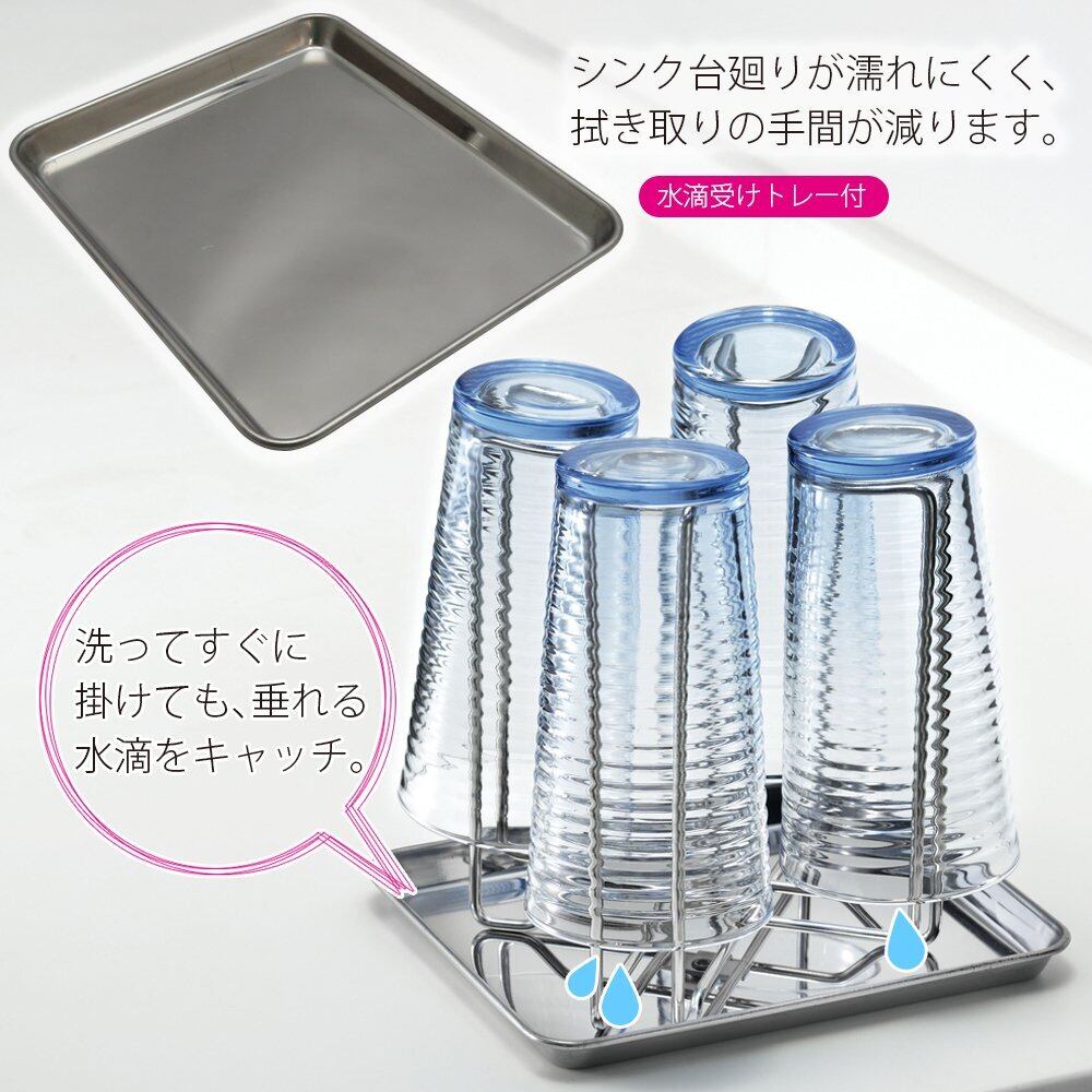 グラス4客の水切りができます。使わないときはたたんで収納できます。