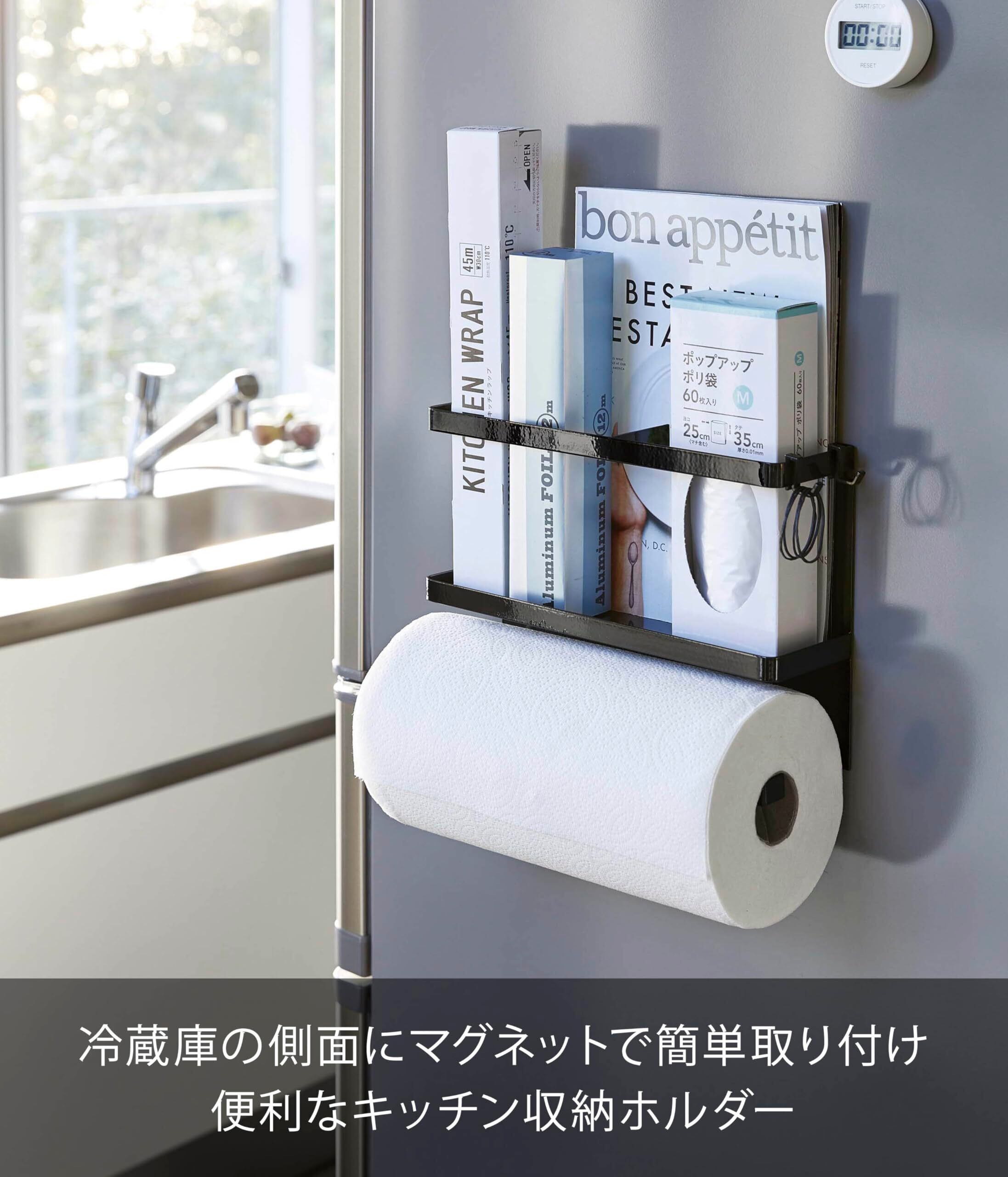 山崎実業(Yamazaki) マグネット キッチンペーパー & ラップホルダー ブラック 約W29XD8XH20cm タワー キッチンペーパーホルダー 大判タイプ対応 4397