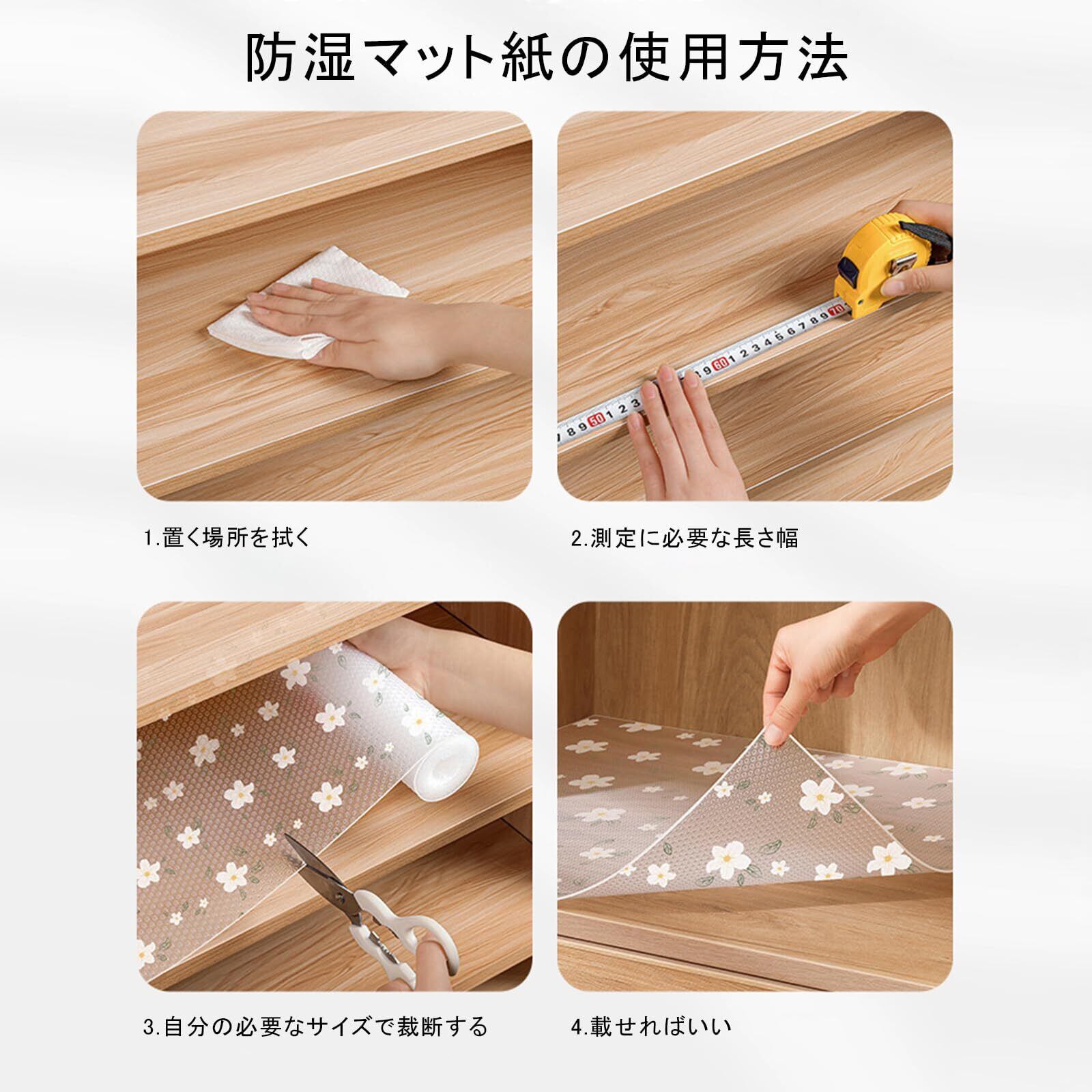 キッチンボードやキャビネットなどの上に敷いてもおしゃれで便利。ワードローブ、ドレッサーや引き出し、デスクトップ、本棚、調理台、キャビネット、シューズキャビネットの上にも敷くことができます。