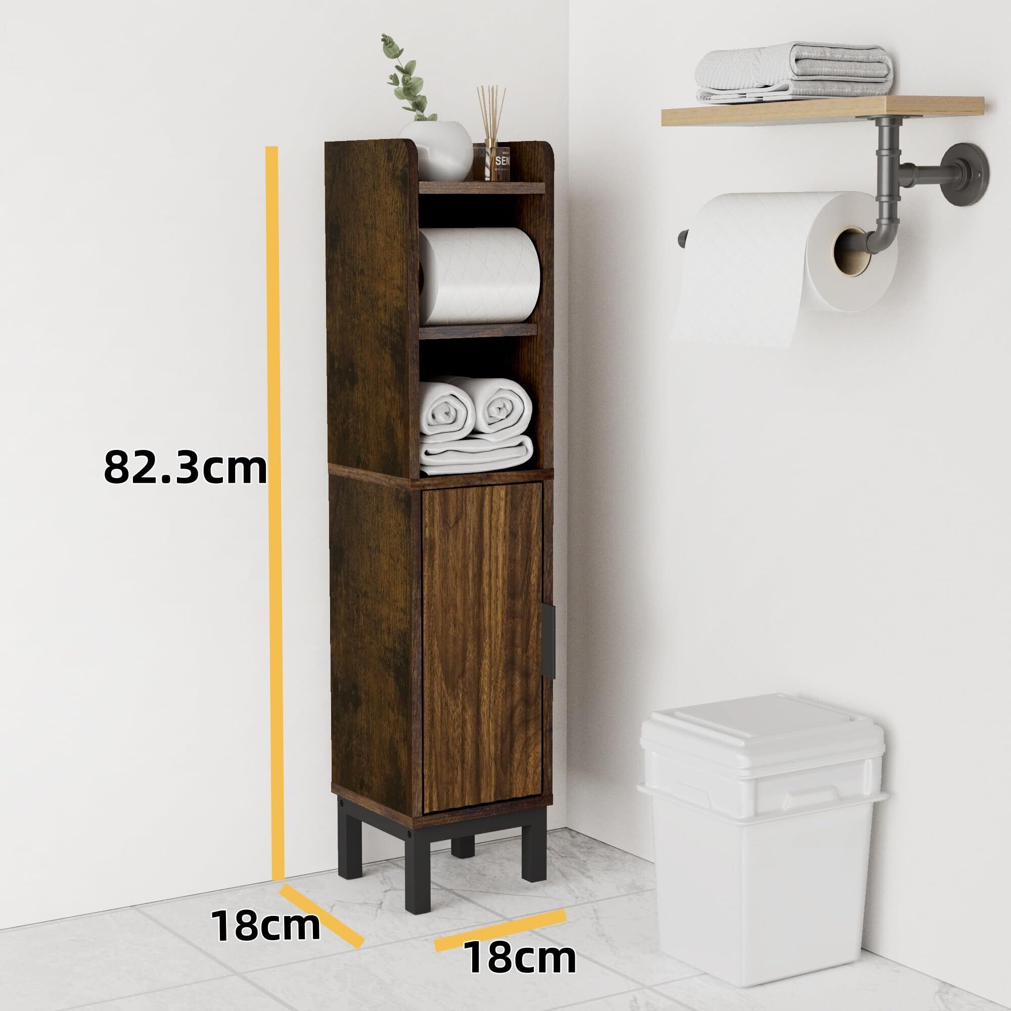 Druvia トイレ 収納 隙間収納ラック 防水 調整可能 簡単お手入れ収納 ラック スペース活用 ブラウン 防水素材 ドア付き 幅18cm 高さ82.3cm