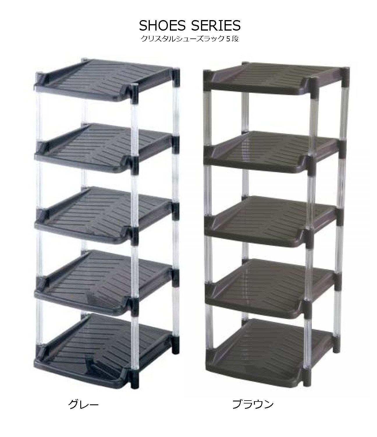 平和工業(Heiwa Kougyou) シューズラック クリスタル 5段 グレイ グレー