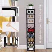 【省スペース 大容量のシューズラック ブラック】サイズ:幅約30×奥行30×高さ176cm,靴ラックは、最大10足収納可能。スリムなので、限られたスペースの玄関でも、空間を圧迫せずにたくさんの靴を収納できます。扉や壁がないので通気性も良く、湿気やニオイがこもりません。