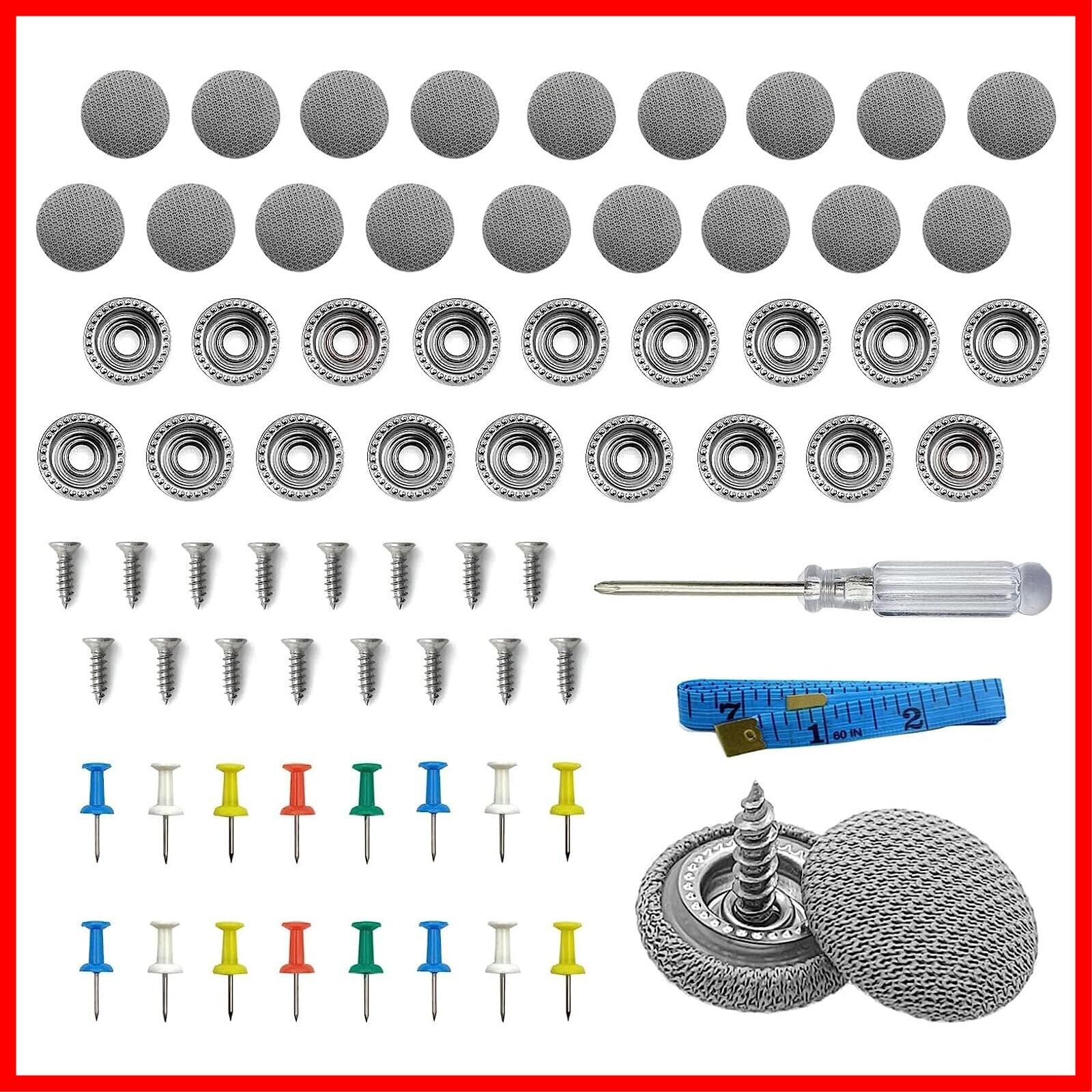 aninako 60個 車天井垂れ修理 リベット 修理ボタン ルーフリベット こていそうち 自動車室内天井布固定修理に適している 取り付けツール付き すべての車に適合 (格子/グレー)