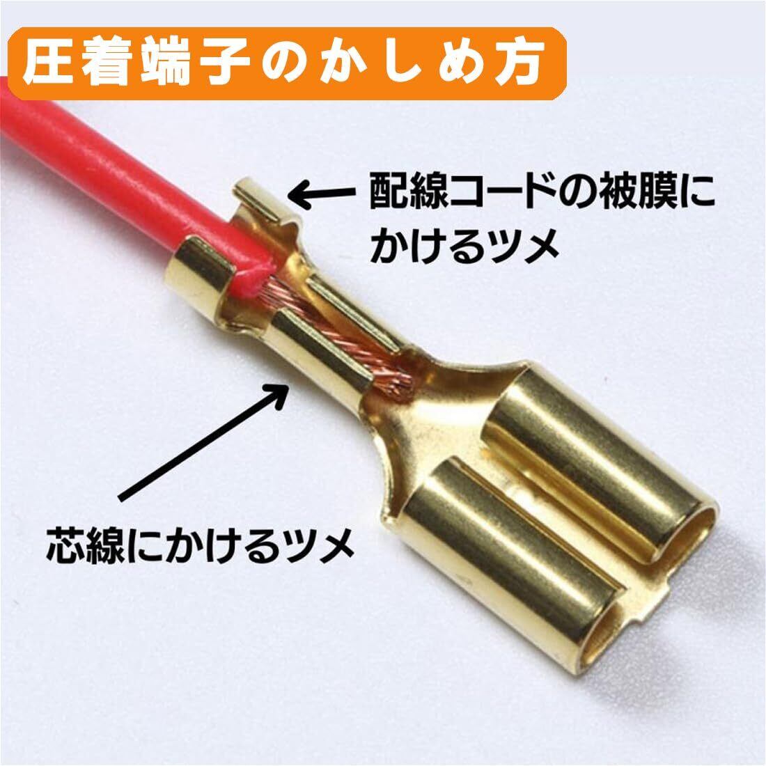 【使用簡単】まず、絶縁スリーブを電線に接続し、次にケーブルの両端にメスとオスの平型端子を繋げて組み合わせて使います。ご注意:専用の電工ペンチを使用して配線コードの接続を行います。