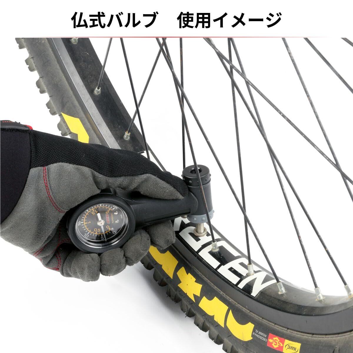 モーターサイクル・MTB専用エアゲージ。米式・仏式バルブに対応。